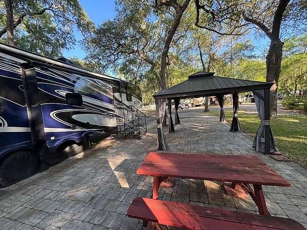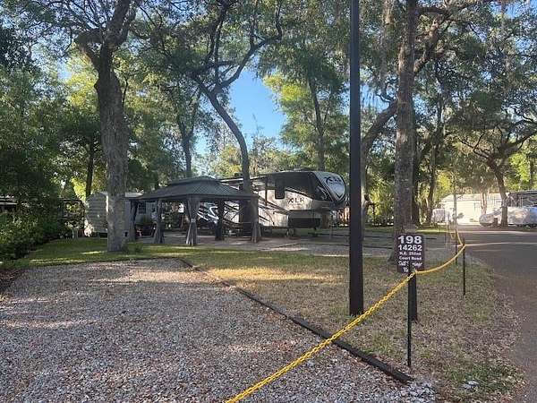 One of the Largest Deeded Lots in the Resort along with great location! – Full time or Part time – This Lot features one of the most spacious lots in the resort with multiple places to park and plenty of room for your boat, ski jet or whatever other toys you may have. Metal shed has washer & dryer for your laundry needs - Shade is provided throughout the resort with large oaks and hickory trees adorned with Spanish moss that dances in the breeze. Sand hill cranes wander about. Your canoe is at hand for an early morning fishing trip along the shoreline or take the kayak if you prefer. For the boaters you may take an afternoon slow cruise around the lake. Glorious sunsets will prompt oohs and aahs from your visitors or friends as the sunsets are breath taking. Come enjoy all the amenities of the park which include a clubhouse, 2 swimming pools, tennis court & shuffleboard, to name a few. Centrally located to Ocala, Palatka and only hour or so from Daytona Beach! Your golf cart will get you to the nearby stores and post office. Your electric bike will propel you around the paved streets of the resort – for the more adventurous grab the mountain bike and enjoy all the nearby trails. RV unit will remain on the property and will be between the Sellers & Buyer(s).