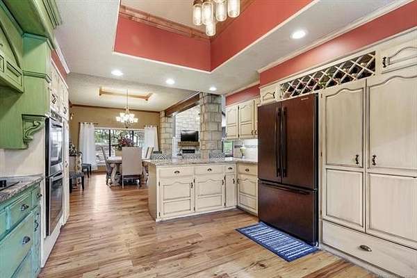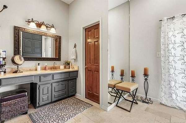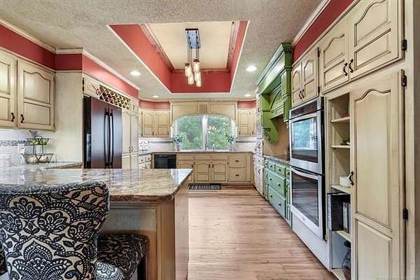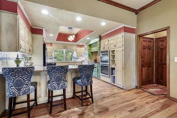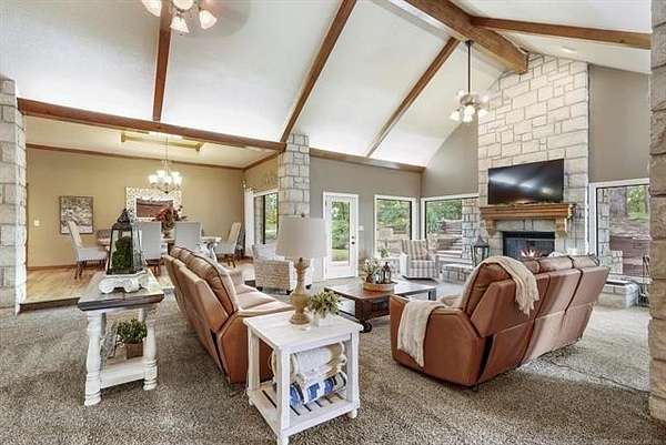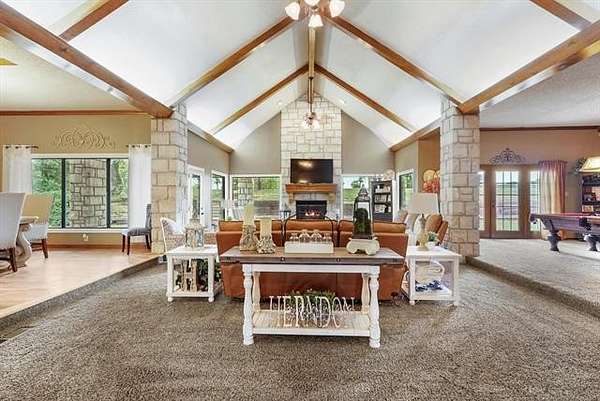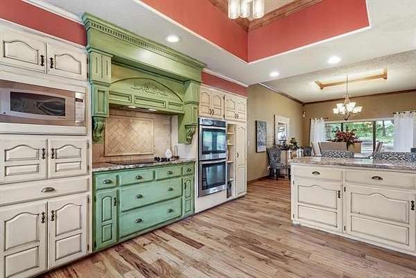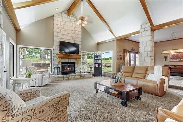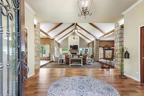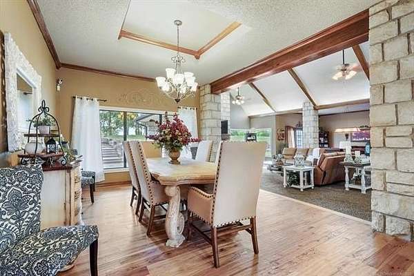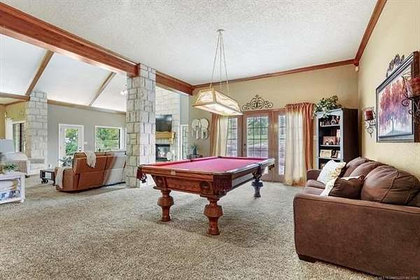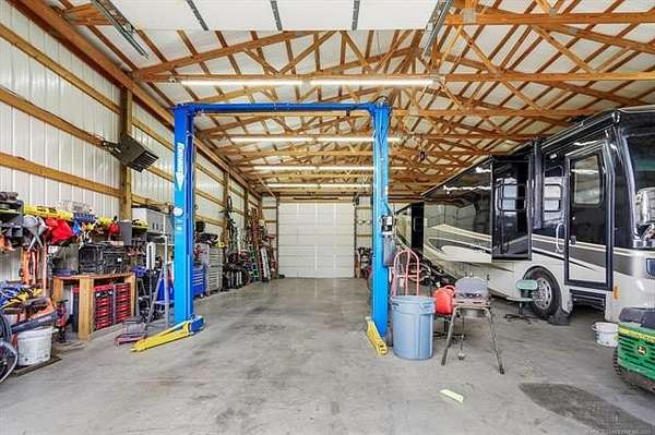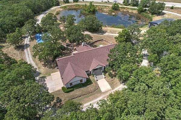 This privately gated estate is sitting on over 13 Acres M/L waiting for you! A beautiful pond on your property as well as an inground pool and hot tub. Set at the end of a private road you can be assured no one will be setting up a mobile home on your road. Quick access west via the new Turnpike entrance, or east to Tulsa via the Sapulpa entrance. Check out your brand new heated 60x40 shop with 16' side walls and 3 14' overhead doors with openers. Inside your shop you will find a 10,000 lb heavy duty car lift and 200 amp service! This wonderful home features stunning catherdral celings in the living room! A separate office with built in bookshelves. Upgraded features include a new roof, new heating and air units, new windows in the living and dining room. A completely remodeled kitchen and all bathrooms have been remodeled. New hardwood flooring and carpets are throughout the house. New hot water heater extra insulation added. Too many other extras to list. Ask your realtor for a copy of the updated list.