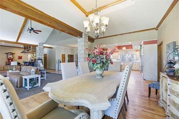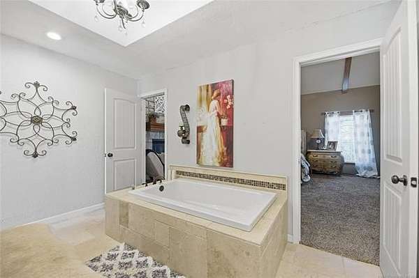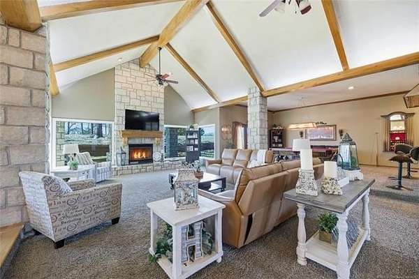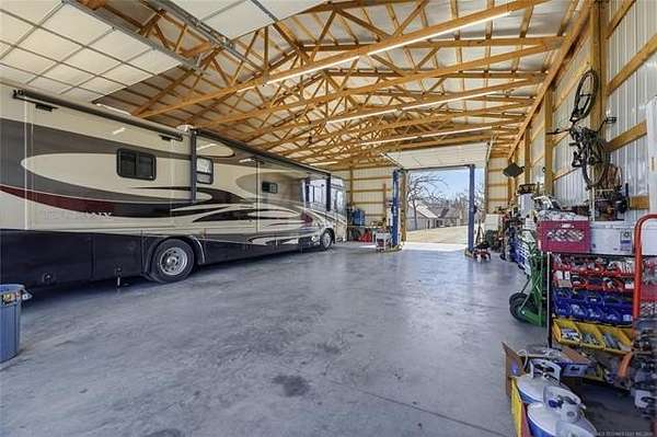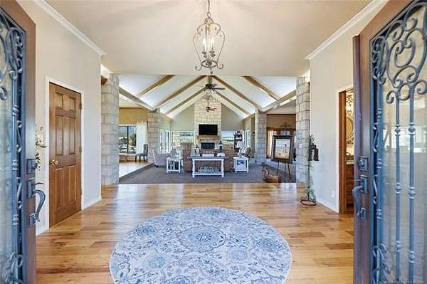 Gated estate on 15.36 acres near Tulsa, tucked at the end of a secluded private road. This fully renovated ranch residence offers a rare combination of privacy, acreage, and city convenience in one exceptional setting. The home features soaring cathedral ceilings, expansive living spaces, and a completely remodeled kitchen and bathrooms with quality updates throughout. Major improvements include a new roof, HVAC systems, updated windows, added insulation, new carpet, and a water heater, delivering modern comfort with country scale. Outdoors, the property is designed for both relaxation and capability. Enjoy a private in-ground pool and hot tub, along with a fully stocked pond. An impressive 60x40 heated shop with lift, 16' side walls, three 14' overhead doors, 200-amp service, and reinforced flooring offers exceptional flexibility for vehicles, equipment, business use, or car collection. Properties combining gated access, acreage, a pool, a workshop with a lift, and proximity to Tulsa are seldom available in one setting. Space to live. Space to work. Space to unwind. Private showings by appointment only.