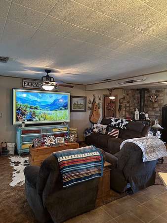 Est $1,690/moGreat location located on the edge of town with 9.136 acres to spread out. A 3 bed 2 bath with ample space in bedrooms and living area. Living area offers plenty of room along with a wood burning stove. 2 car carports with shop and cellar. Property is fenced with a small pond. Don't miss out on this country living close to town.