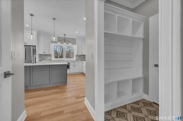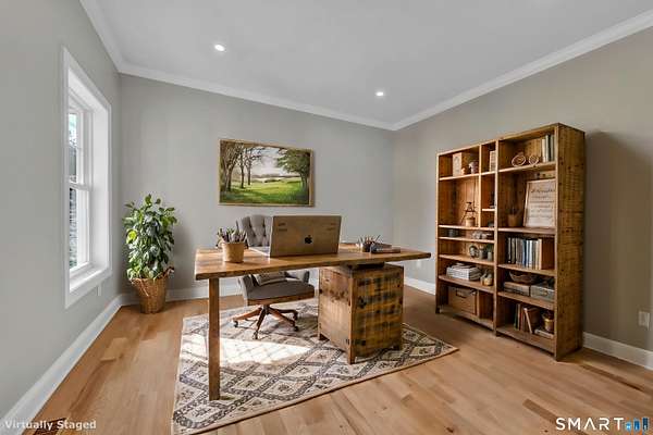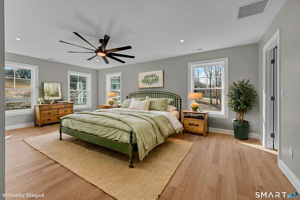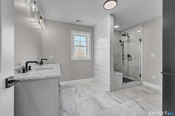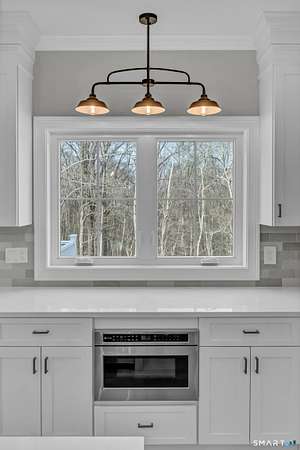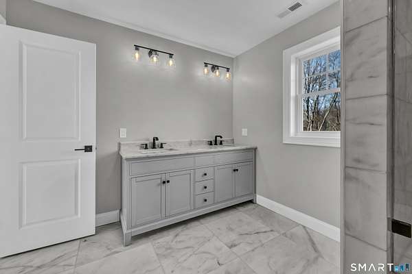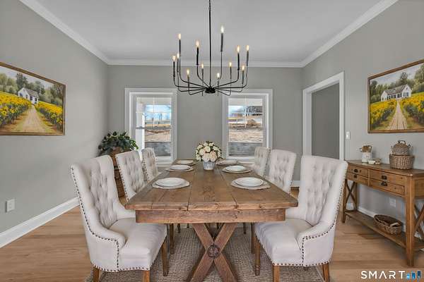 Luxury new construction set on a scenic 3.25-acre homesite. This 4BR, 3.5BA home offers 3,674 sq ft of beautifully finished living space including a walkout lower level. The exterior features board-and-batten siding and a covered front porch with composite decking. Inside, a bright open floor plan with hardwood floors throughout the main level includes a dedicated office, formal dining room, and a stunning kitchen with stone countertops, high-end stainless appliances including a double oven, a large island with sink, and a spacious walk-in pantry with custom shelving. The kitchen flows seamlessly into the family room with a gas fireplace & shiplap feature wall. A mudroom area just off the garage adds everyday convenience. Upstairs, the primary suite offers a walk-in closet and spa-like bath with double vanity, tiled shower, and heated marble floors. Three additional bedrooms provide generous space, including one with a large adjoining bonus room ideal for storage/future finished flex space such as a playroom or hangout area. A convenient second-floor laundry room adds practicality. The finished walkout lower level includes a full bath and flexible space for a gym, media room, or possible in-law setup. Composite rear deck w/ hose spigot overlooks the natural landscape. Oversized 24x34 garage offers room for storage, a workshop, or even a golf simulator. Spray-foam insulated envelope along w/ Ring doorbell two security cameras. Don't miss this ONE! See agent remarks for details