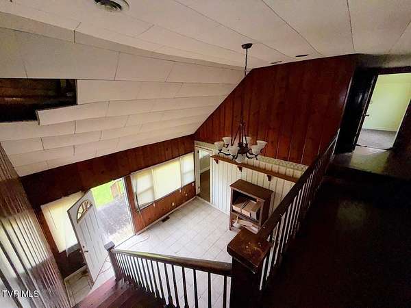 Looking for a project that stands out? This stone-veneer Cape Cod is a true one-of-a-kind fixer-upper with a layout you won't find elsewhere. The main level features a dramatic vaulted entryway with wood-paneled walls and a rustic lodge feel. This floor includes one bedroom and a dedicated laundry room where a bathroom was previously removed. The second level holds the remaining three bedrooms and the home's full bathroom. All upstairs bedrooms feature charming built-in window nooks that provide plenty of natural light. Outside, the property sits on a beautiful, open green lot with a massive shade tree and a wooded backdrop. Bring your tools and your vision to transform this unique blank canvas! All info is pulled from CRS and should be verified by the buyer and buyer's agent.