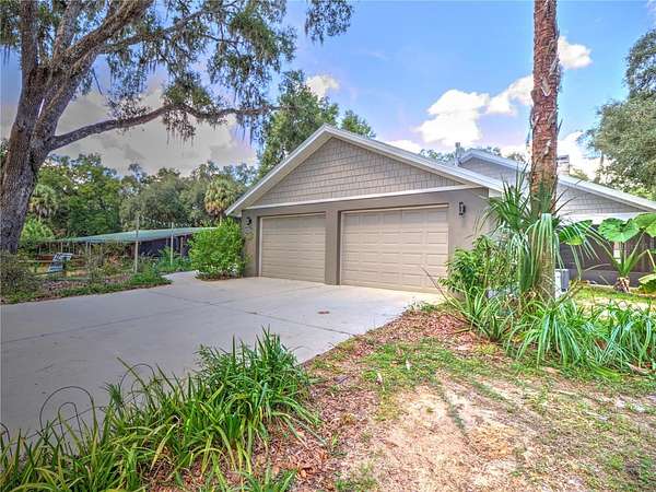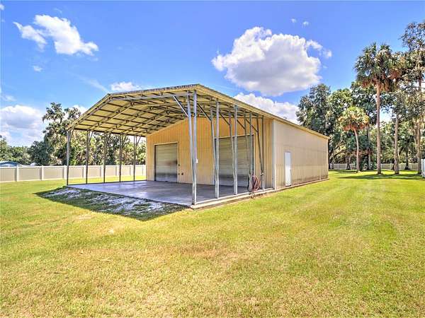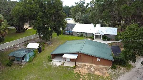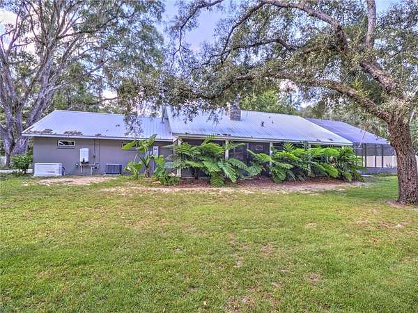 Wonderful 3/2 home located in Anthony, FL. Home sits on 3.51 acres of beautifully shaded acres with tons of extras. The main home was built in 2023. The kitchen has all stainless-steel appliances, solid wood soft close cabinetry and stunning stone countertops. The living room dining room combo area has a stone-faced gas fireplace and French doors to the covered screened in patio with plenty of natural light. The home has a indoor laundry room with stackable washer and gas dryer. The primary bedroom has a large walk-in closet with built-ins and a wonderful ensuite that has double vanities and a luxurious walk-in shower. It also has French doors that lead to the patio with outdoor shower and screened-in above ground pool with wood deck. The outdoor patio also has a wood burning fireplace for the cool nights. There is a guest bathroom and 2 quaint guest bedrooms. One guest bedroom also has a pocket door with access directly to the guest bathroom. On the property is one 300 sqft tiny home with own septic perfect for guest house or rental income. There is also another 600 sqft insulated building ready to be renovated into a 2nd tiny home with running water and A/C, currently being used as a workshop with lots of storage and counter space. There is a huge 40 X 60 foam insulated steel building that could have many uses, which 40X40 is enclosed. Bring the RV's also, with a large steel RV port for storage with room for 2 RV's under cover. There also 2 electric RV hook ups on the property with own septic that offer other income opportunities. By the main house is a outdoor screened in area with lighting and outdoor kitchen and gathering area perfect for entertaining with air-conditioned office area and dog kennel. The dog kennel has AC indoor area and outdoor fenced areas, another income opportunity! COME TAKE A TOUR!