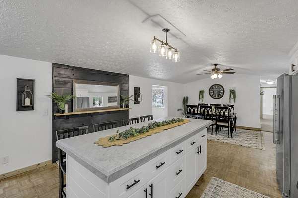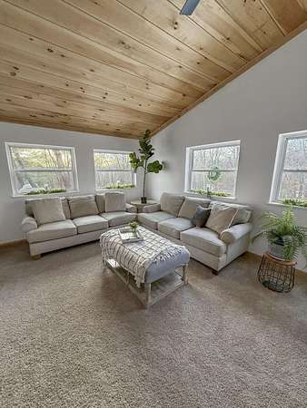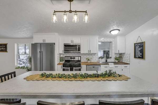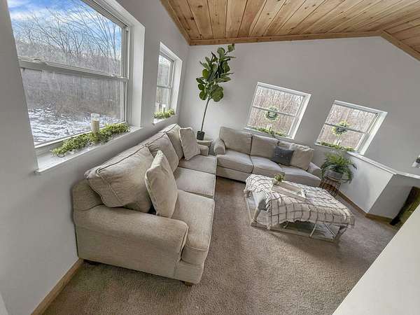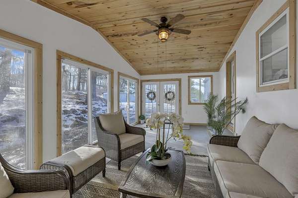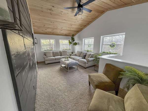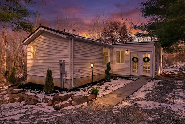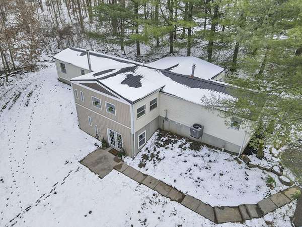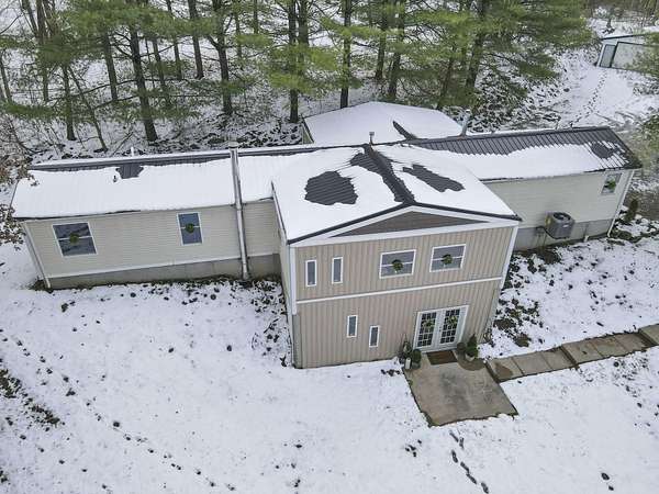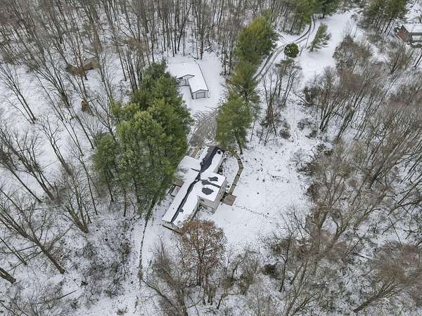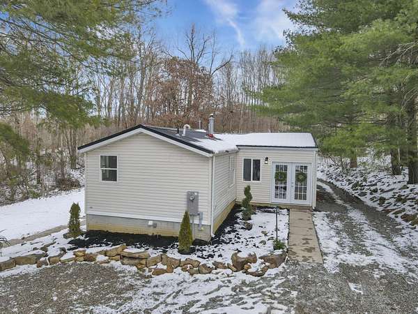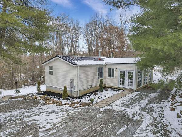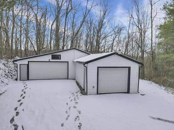 Welcome home to this beautifully renovated ranch nestled on a stunning 7.26 acres of serene, wooded property. Every detail has been thoughtfully updated, offering modern comfort paired with peaceful country living. Total of 5 bedrooms and 2.5 baths. Step inside to a bright, open floor plan featuring an all-new kitchen with stainless appliances, ample cabinet space, and both a formal dining area and a cozy eat-in kitchen. The spacious living room provides the perfect setting for gathering and relaxing while enjoying views of the surrounding nature. Convenience meets luxury with first-floor laundry and a private primary suite designed for comfort. A charming 3-seasons room extends your living area and offers a quiet retreat to enjoy the changing seasons year-round. The fully finished walk-out basement adds exceptional value and versatility. Perfect for entertaining, additional living space, or future customization to fit your needs. Outdoors, you'll find room to roam, explore, or simply unwind. The property also includes a 1,344 sq. ft. farm building/garage, perfect for storage, hobbies, equipment, or workshop use. A move-in ready retreat with land, privacy, and modern updates. This one truly has it all.