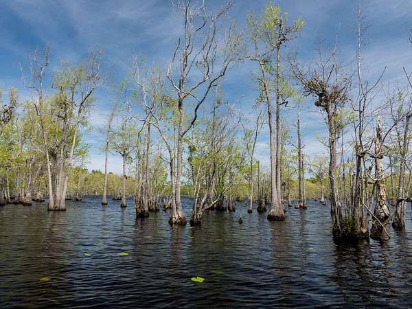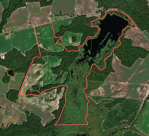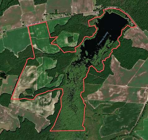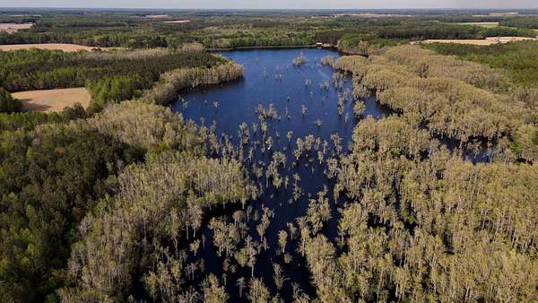 At the heart of the property is a breathtaking 62-acre lake, offering outstanding opportunities for bass fishing, waterfowl hunting, and year-round recreation. Stands of flooded cypress create a striking visual backdrop while providing ideal habitat and cover for wildlife. Surrounding the lake are approximately 94 acres of productive farmland and 185 acres of timberland, delivering a rare balance of income potential, recreation, and long-term investment value.