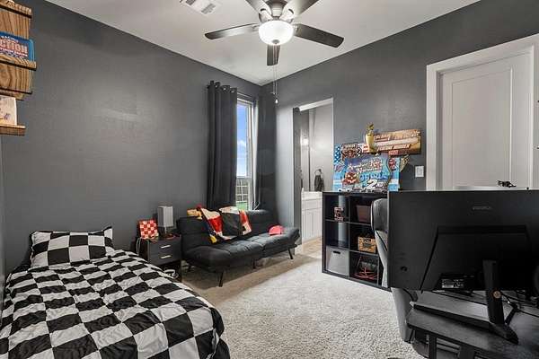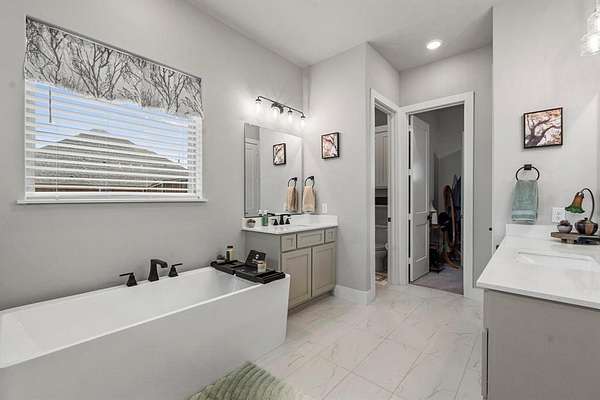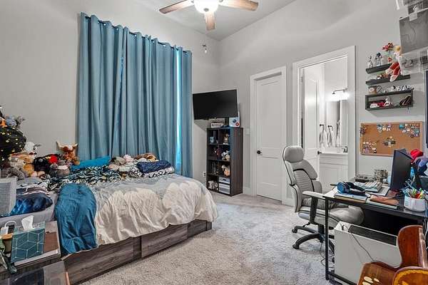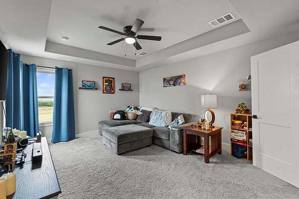 This beautiful home sits on a sprawling lot and offers all the benefits of a new build without the wait. Step inside to an inviting open-concept floor plan featuring high ceilings, abundant natural light, and stylish finishes throughout. The spacious kitchen is a true showstopper, complete with granite countertops, stainless steel appliances, sleek cabinetry, a large island with seating, and a walk-in pantry. The private primary suite serves as a relaxing retreat with a large walk-in closet and spa-inspired ensuite bath offering dual sinks, a soaking tub, and separate shower. Secondary bedrooms are generously sized with ample closet space. Dedicated laundry room and abundant storage add everyday convenience. Upstairs, a versatile bonus space with a convenient half bath provides the perfect flex area that is ideal for a game room, media room, home office, or guest retreat. Enjoy outdoor living with a brand-new privacy fence and extended driveway completed in Spring 2023, providing plenty of room for RVs, boats, trailers, or additional vehicles. The oversized backyard offers endless possibilities for gatherings, pets, or future additions such as a pool or workshop. Additional highlights include energy-efficient windows and HVAC, modern flooring with a neutral palette, spacious garage, and additional parking. Conveniently located in a peaceful setting with easy access to I-30, shopping, dining, and schools. This home truly checks all the boxes -- space, flexibility, and functionality all in one!