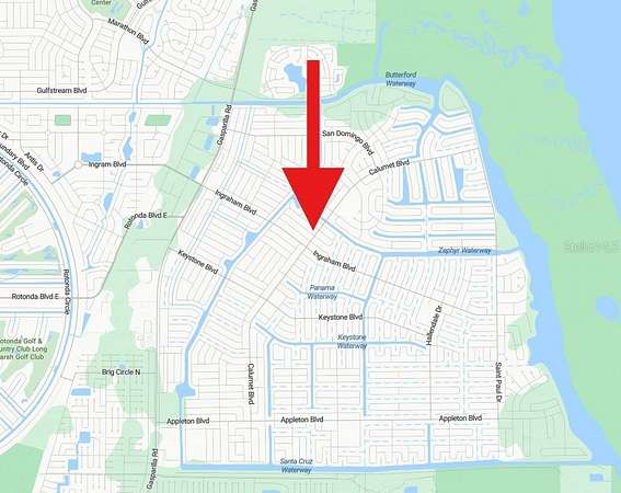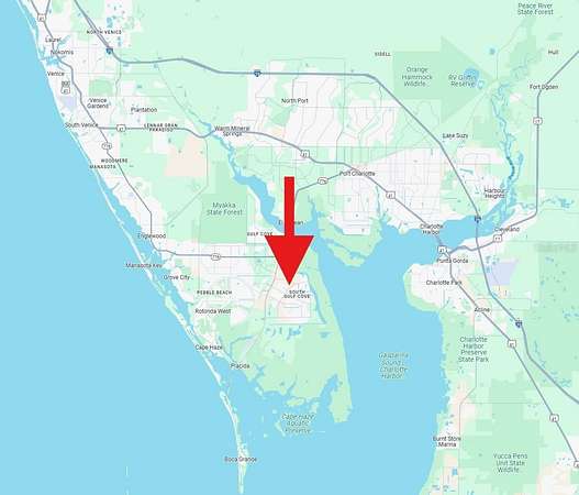 To reach 14280 Salvatierra Lane, Port Charlotte, FL 33981 from I-75, take Exit 179 for Toledo Blade Boulevard toward North Port and head south for approximately 4.8 miles. Turn right onto SR-776 (El Jobean Road/McCall Road) and continue west for about 7.7 miles. Then, turn left onto Gasparilla Road (County Road 771) and drive south for another 3.6 miles. Next, turn left onto San Domingo Boulevard, the main entrance to the South Gulf Cove community. From there, turn right onto Calumet Boulevard, then make another right onto Salvatierra Lane. The property is a desirable corner lot and will be located on your right-hand side.
