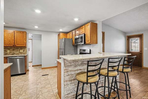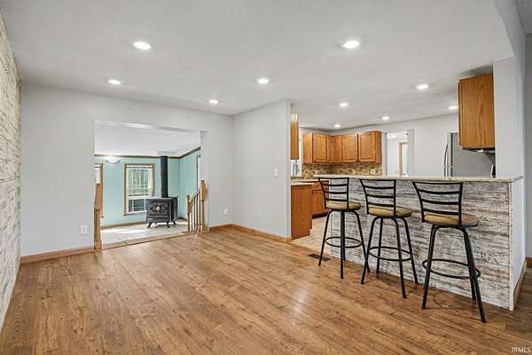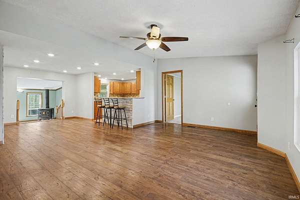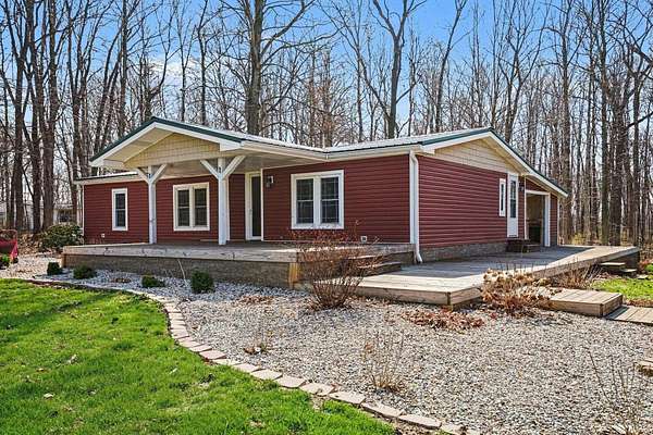 This beautilful home features 1736 sq ft of living space, newer custom solid wood kitchen cabinets , quartz countertops, solid wood doors , brand new flooring in most areas, custom bathroom with claw ft tub, new windows, siding, roof, large addition family room w / wood burner patio doors leading to partially enclosed porch , with gas fireplace, outdoor kitchen ready to hook up sink (sink included ), large deck wrapping around the house, park like setting leading to the woods, 2 + car detached garage, plus additional 30x53x25 2 story pole barn fully insulated perfect for home based business ,plus lots of storage peach , apple, and plum trees for your ready for your harvest , beautiful walking trails through the woods ,, yard decor in landscaping will not stay Hot tub and flag pole will not stay