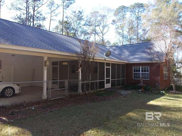 Truly beautiful two acre private setting with well maintained brick one-story that was custom built for the current owner. House features vaulted ceilings extending through the living/dining/kitchen/den and abundant windows. Wood flooring & granite kitchen counters. Gas fireplace, display shelving & sound systems. Built-in desk & extra cabinetry. Large utility room connected to primary bath with custom closet. 12 x 26 screened porch overlooking landscaped site by master gardener with new chain link fencing. Two carport with adjacent 20 x 16 shop/storage. Fortified roof and HVAC replaced in 2025. Located southwest of Silverhill proper close to Fairhope and new school. Buyer to verify all information during due diligence.