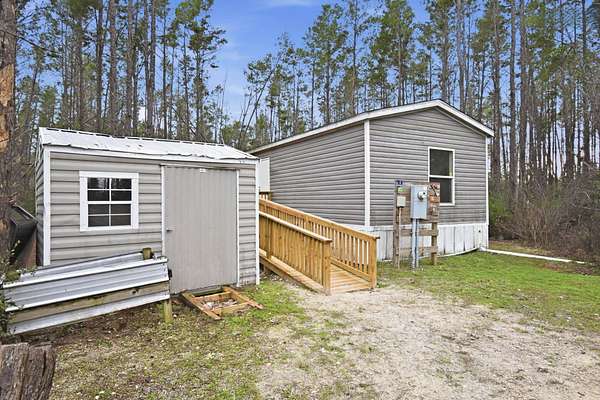 Cash Only. Enjoy low-key Southern living on 2 peaceful acres just 10 minutes from the Gulf-perfect for fishing, scalloping, boating, and unforgettable sunsets. This 2 bedroom, 2 bathroom mobile home offers privacy and space while still being convenient to everyday needs. Located just 20 minutes from town, you'll have easy access to a local hospital, grocery stores, restaurants, and shopping, all while coming home to a quiet, rural setting. The property features well and septic, a pole barn with RV hookup, and multiple storage sheds, providing plenty of room for equipment, hobbies, and outdoor toys. Whether you're looking for a weekend retreat, full-time residence, or recreational base near the Gulf, this property offers space, freedom, and coastal proximity.