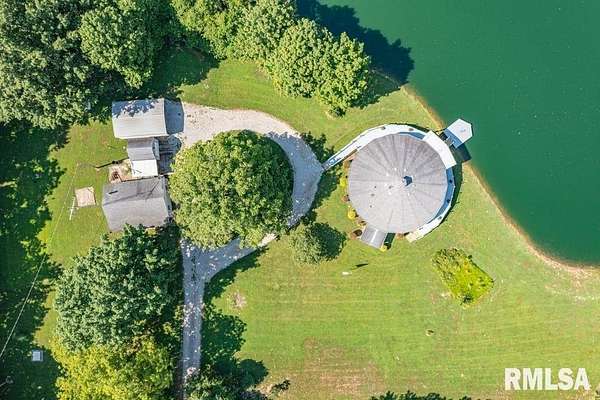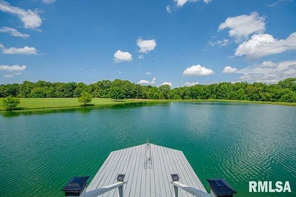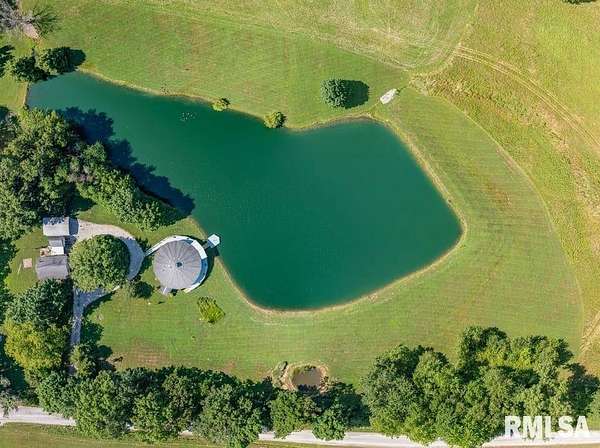 PRIVATE 53 Acres, a rare opportunity to own a Custom built home, Step inside to see Panoramic views of the water, land and wildlife and each season of the year, Open floor plan feels spacious and is full of natural light, per assessor, this home has 1558 square feet of living space, 2 bedrooms, 2 full bathrooms, move in ready, vaulted ceilings, original Hardwood Floors & Kitchen Cabinets hand crafted from the oak timber on site, step right out your door to fish, hunt or relax and enjoy the views of your own private oasis. The land is a mix of timber and open ground, currently in hay production, room dimensions are approximate, due to the curvature of the outer walls, this is MUST SEE property, pictures and words cannot do it justice, Field Grade School, Mt Vernon High School, and is located near Miller and Jaycee Lakes