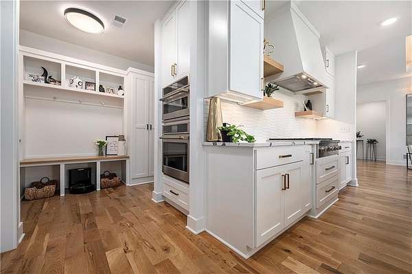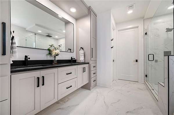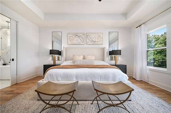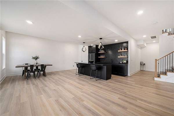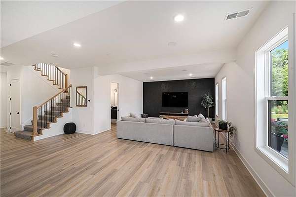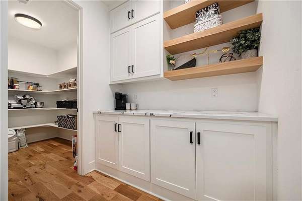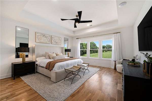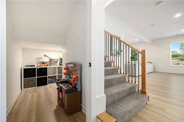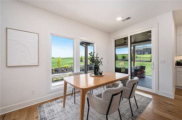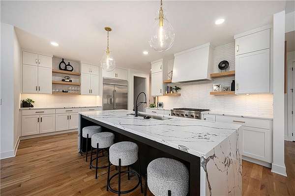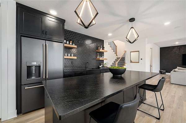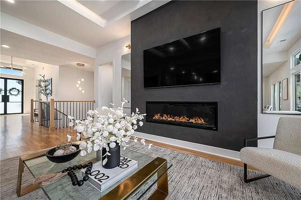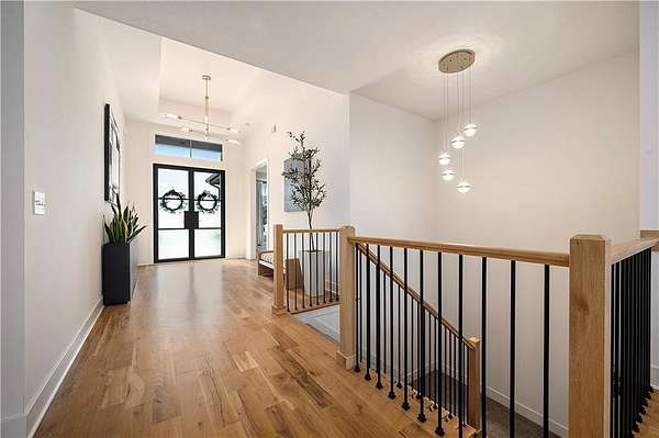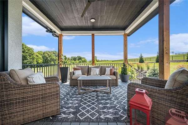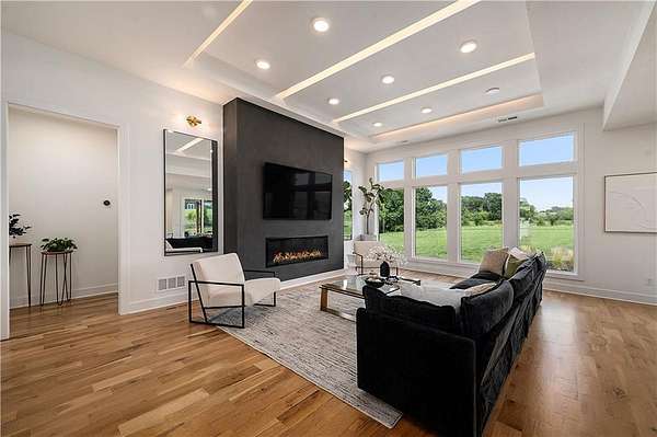 Welcome to this stunning custom reverse 1.5-story home, set on a beautifully manicured 3.62-acre lot. From the moment you arrive, you'll notice the meticulous landscaping, treed-lined driveway, and custom stone path leading to the striking 10' double entry doors. The side-entry 3-car garage features epoxy flooring and adds to the home's clean, modern appeal. Inside, 10' ceilings and hardwood floors run throughout the main level. The east wing of the home was expanded to accommodate spacious bedrooms and an impressive primary walk-in closet. The primary boasts a tray ceiling with ceiling fan, the luxurious ensuite includes a freestanding tub, double vanity, and a walk-in shower. The open-concept living room features a handcrafted ceiling design and a Roman Clay gas fireplace. Black Pella windows provide picturesque views of the backyard and pool, while flooding the living area and kitchen with natural light. No detail was spared in the designer kitchen, complete with a waterfall-edge quartz island, custom cabinetry, tile backsplash wall, wrapped hood vent, floating shelves, and 6-burner gas stove. A coffee bar, butler's pantry, and walk-in pantry add functionality. Downstairs offers an expansive open layout with 10' ceilings, luxury vinyl plank flooring, full bath, full bar and half bath. The show-stopping basement bar features an oversized black quartz island, sink, custom cabinetry, tile feature wall, and floating shelves. Two additional bedrooms and a third full bathroom complete the lower level. The storage room has been converted into a home gym and includes John Deere doors that open to pool deck. Outdoors, enjoy a private oasis with a beautifully landscaped Pinnacle fiberglass 35' in-ground pool, with retractable cover, retaining wall, ambient lighting, and tree-lined east boundary. Convenient pool storage is tucked beneath the deck. This home offers luxury, privacy, and custom craftsmanship at every turn.