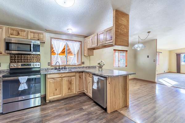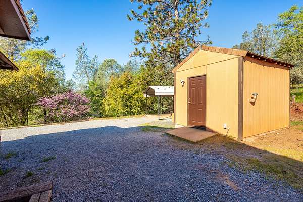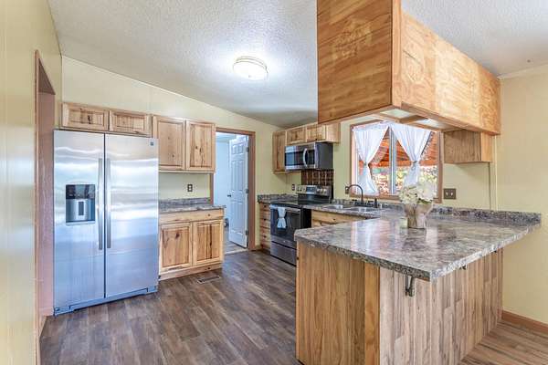 Private country Setting on 2.5 peaceful acres! This inviting property features ample off-street parking, a detached carport, and a private drive. The three-bedroom, two-bath home offers stainless appliances, an indoor laundry room, evaporative cooler, electric wall heat, new water heater, and a freestanding wood stove. Outside, enjoy covered decks overlooking fenced and cross-fenced acreage with feed storage, animal enclosures, a chicken coop, covered stalls and wash station. Apricot, Pomegranate and Asian Pear fruit trees along with plenty of space for all your outdoor activities. A single-user well with a holding tank and storage building with 220 amp power complete this well-prepared country retreat.