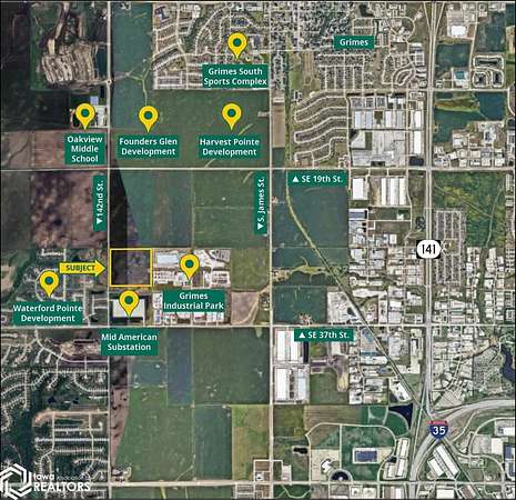Est $21,541/mo44.80 acres, m/l, located in Grimes, Iowa on the east side of 142nd St. This nearly level farm has 44.08 FSA/Eff. crop acres with a CSR2 of 88.40. Prime development land within the city limits of Grimes adjoining a Mid-American Substation.