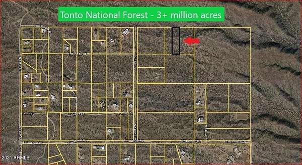 Pristine, rare, 2.3 acres bordering the 3.5 million acre Tonto National Forest. Escape the city life! Elevated, secluded, homesite offering 360 degree mountain views! Enjoy cool crisp air, amazing sunrises & sunsets, clear starry nights, distant city light views, & lush Sonoran Desert. Enjoy horseback riding, mt. bike riding, hiking and off road adventures right from your back door. Adjacent property to the E. has a good water well. Underground power & new homes 1 lot away. Low property taxes, NO HOA! Only minutes from world class golf, fine dining, resorts & shopping. Surrounding parcel deed restrictions are limited to 1 house per 2 acres. Rare opportunity to own land like this! Peace and tranquility are here for you!