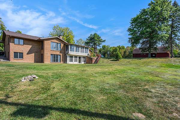 Beautifully maintained brick ranch home on 12 acres with frontage on Duck lake. The home features large living room with a double sided stone fireplace, 3 bedrooms, 3.5 bathrooms. The basement offers a walkout to the back yard, second kitchen, large family room and a 3rd bedroom with a full bath. The property offers a 48 x 30 horse barn with stalls and a 2nd level for storage that could easily be finished off as an apartment or family recreation area. Enjoy the views of rolling hills and tree lines from your 22 x 12 three season porch. THIS HOME IS A MUST SEE! Schedule your showing today.