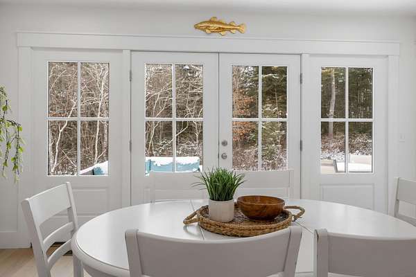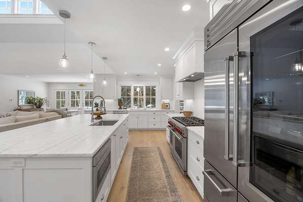 Set on 3.61 private acres just moments from the water, this newly constructed custom ranch offers the rare combination of coastal proximity, modern luxury, and serene privacy in the heart of Marion. Thoughtfully designed for effortless one-floor living, this sprawling home features vaulted ceilings and sun-soaked, open-concept spaces enhanced by wide-plank white oak engineered hardwood floors throughout. The open living, dining, and kitchen area is ideal for both everyday living and entertaining, seamlessly flowing into an additional dining nook with a wet bar and direct access to the patio-creating the perfect indoor-outdoor connection. The high-end custom kitchen is a showstopper, complete with Sub-Zero appliances, an oversized island, stunning marble countertops, and a generous walk-in pantry. Two well-appointed bedrooms are situated on one wing of the home, sharing a beautifully designed Jack-and-Jill bath with white oak vanities and tasteful tilework. The grand primary suite is intentionally positioned on the opposite side for ultimate privacy. A striking brick-floored hallway leads to a spacious laundry room with oversized wash sink and a conveniently placed half bath. The vaulted primary suite features abundant windows, tranquil wooded views, and private access to the backyardan ideal retreat surrounded by nature. The spa-like primary bath includes a large walk-in shower, dual custom vanities, and an expansive walk-in closet. The walk-out basement, built with tall ceilings, offers exceptional potential for future finished space. Outdoors, enjoy the flexibility of a cleared and developed acre while preserving privacy across the remaining wooded landscape, or explore opportunities for further development. Located close to Marion Village, pristine beaches, and scenic coastal vistas, this exceptional property offers refined new construction living near the waterwithout sacrificing space, privacy, or timeless design. A rare opportunity to enjoy coastal New England living at its finest.