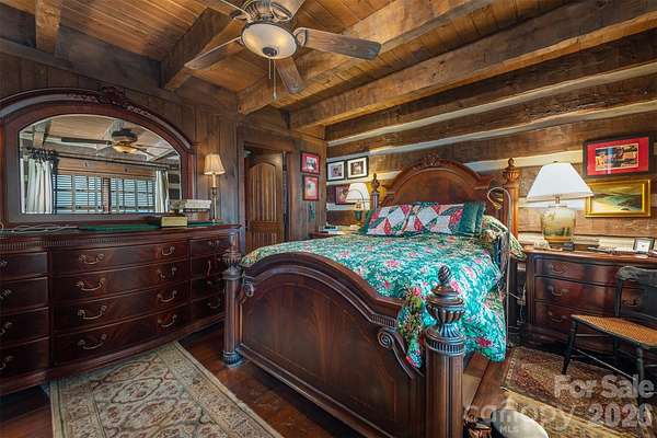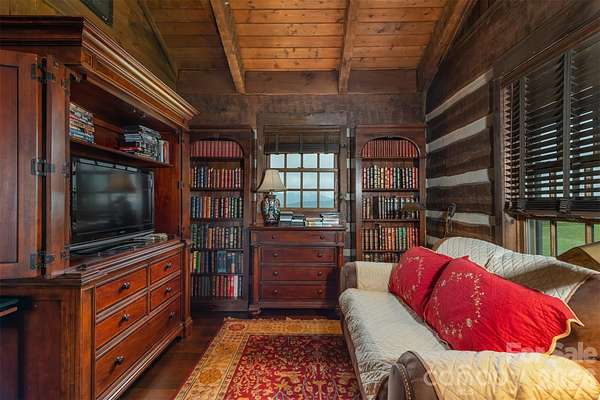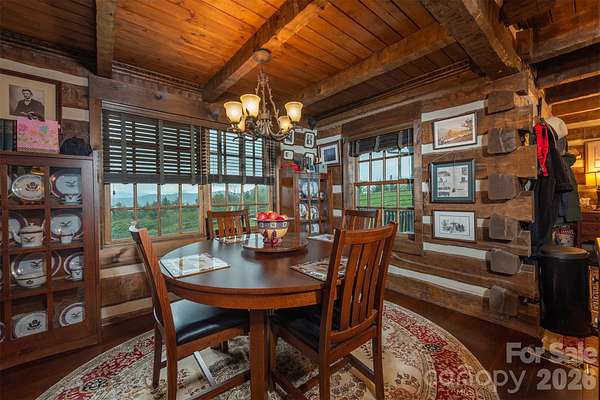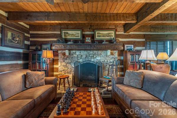 Looking for a mountain home that feels worlds away yet is built to stand the test of time? This handcrafted log retreat offers just that. Perched on a windswept bald a mile above sea level, it's rare to find a home available at this elevation with such enduring craftsmanship. Enjoy breathtaking views of Mount Mitchell, the Smokies, and Pisgah National Forest-every window frames a postcard-worthy scene. Built in 2007 with 8-inch oak logs, hand-hewn details, and a red cedar exterior topped with a Gerard stone-coated steel roof, this home is made to last. Inside, Carlisle wide-plank walnut flooring, custom walnut doors, and a library with built-in bookcases and a secret door showcase the quality throughout. Located on 1,000 acres of gated wilderness, the property offers complete privacy and 360 degrees mountain views. It's not suburbia-it's a place to unplug, recharge, and embrace the beauty of nature.