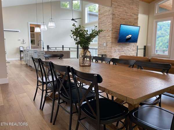 Welcome to Southern Hollow, a brand-new 2024 multi-story lakefront estate on Norris Lake. Designed as the ultimate large-group vacation retreat, this 6 bedroom, 5.5 bath home offers a rare blend of modern luxury, family-friendly amenities, and an unbeatable location. Nestled on nearly two private wooded acres with its own drive, Southern Hollow is both a turnkey income-producing investment and a stunning lakefront legacy property. The home features five spacious king bedrooms with private en-suite baths, including a custom bunk suite with two king beds, making it ideal for multi-family gatherings. Comfort and entertainment are at the heart of the design, with two fireplaces, a cozy outdoor fire table, a hot tub, and a screened porch with a swinging daybed. The kitchen and living spaces are built for hosting, complete with two ice makers, three refrigerators, dual laundry rooms, and seven TVs throughout. The lower level is a true game zone, featuring giant Scrabble, foosball, cornhole, and a pub table for cards and board games. An EV charging station with a 14-50 plug adds to the convenience. Life at Southern Hollow extends seamlessly to the outdoors, with a private covered dock and waterslide just a short walk from the house, plus a neighborhood boat launch for easy access. From the dock, you're only minutes from Norris Lake's most popular attractions, including the famous Jumping Bridge, five marinas and lakefront restaurants, and the brand-new Sugar Hollow Water Park located just across the channel. Boat rentals can even be delivered directly to your dock and picked up when you're done. Beyond the lake, nearby attractions include Chapman Hill Winery and Deerfield Golf Resort just five minutes away, world-class ATV trails within 30 to 45 minutes, and great hiking at Cove Lake State Park, Norris Dam State Park, and the Cumberland Trail. Knoxville is less than an hour's drive for shopping, dining, and entertainment, and concierge services are available for groceries and special requests, making every stay effortless. Southern Hollow is more than a home-it's an opportunity. Whether you're seeking a high-demand, income-generating short-term rental or your own private retreat for family and friends, this luxury estate offers a rare chance to own a piece of the Norris Lake lifestyle.