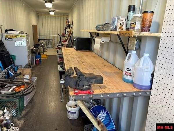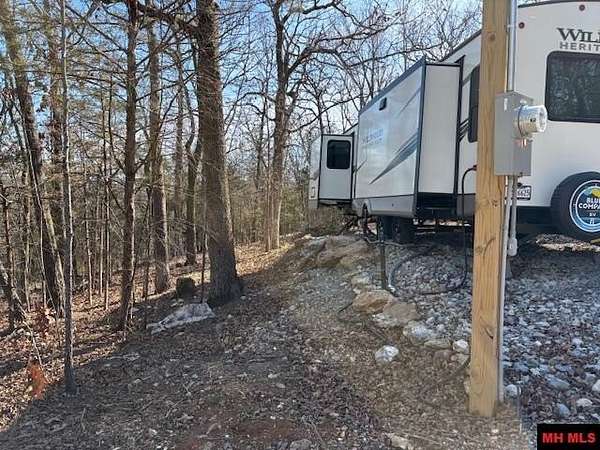 Unrestricted land with 2024 Wildwood Heritage Glen, model 308RL trailer. This 1 AC M/L is right up the hill from Bull Shoals Lake. The RV boasts a modern interior with all the including washer & dryer located in a large closet, 2 A/C units and an on-demand water heater. Outside sits a new 40’ Conex 8’ W, 9’ T. There is a 50” Sony wall mounted TV with soundbar and 4 more Sony Speakers. Also included is a min frig w/freezer, microwave, work bench, pegboard, and shelving. LED lights, ceiling fan and plenty of outlets provide a nice shop experience or could be used for additional sleeping quarters. All utilities in place, lots of parking or room for additional out buildings or to build a home. The area is safe and quiet providing a serene place to either vacation or live permanently. Plenty of wildlife to sit and enjoy. Camper is not attached to deck and could be pulled away to travel and come back to base camp anytime. A hard-to-find setup that offers value and versatility.