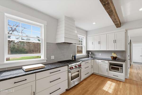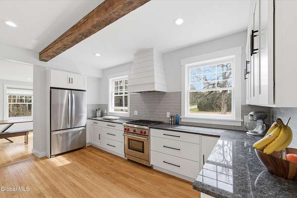 *OPEN HOUSE Sunday 4/19/26 3pm- 5pm* You don't come across homes like this very often in Saratoga. Set on 2.23 acres in that sweet spot between downtown and Saratoga Lake, this restored farmhouse strikes a balance that's hard to get right--authentic character without giving up modern comfort. The current owner took the time to do it properly, preserving the post-and-beam feel and the wide-plank pumpkin pine floors while upgrading the systems and finishes throughout. The kitchen is a standout, custom-built with a pantry and breakfast nook that actually make it a place you'll use, not just look at. The main level is open enough for entertaining, but still has those smaller, cozy spaces that give the home personality. What really sets this apart is the layout. Every bedroom has its own bath, including primary suites on both the first and second floors, giving flexibility whether you're hosting guests or planning long-term living. There's also a seamless connection from the two-car garage through an enclosed vestibule, which makes a world of difference year-round. Add in soaring ceilings, dual zone HVAC and over 3,200 square feet, and you've got a home that feels substantial without losing its warmth. You're minutes to downtown, the track, and the lake, but when you're here, it feels like your own space. It's not trying to be something it's not. It just works, and it works really well.