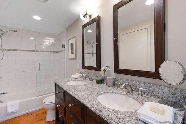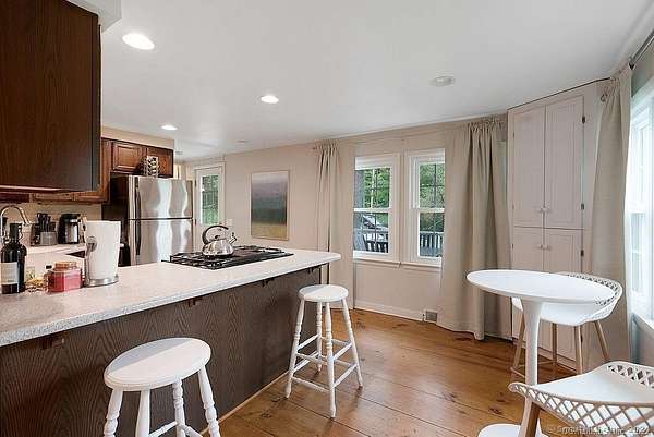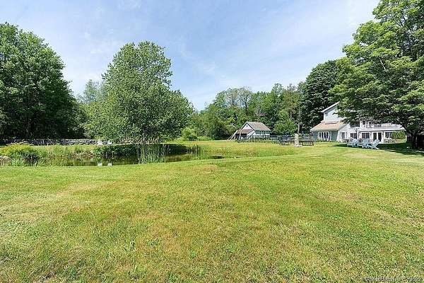 Est $10,473/moPristine 1920's barn-style 4 bedroom/4 bath home with separate 1-bedroom cottage set on 20 +/- open acres with a stream, ponds heated pool and tennis court. Walk or bike-ride along this scenic road into a land preserve and historic farms. Magnificent stone fireplace, vaulted beam living room, open floorplan. Dine or relax on the flagstone terrace poolside surrounded by new dawn climbing roses, hedges and blue hydrangea. Close to Lake Waramaug and Mohawk Mountain Skiing.