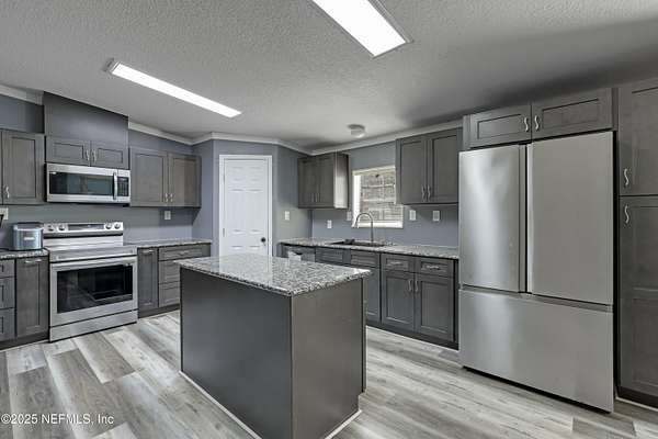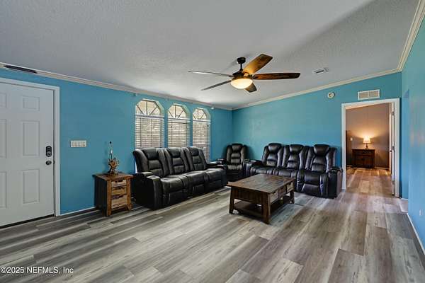 MOTIVATED SELLER!UPDATEDFENCED LOTACREAGE** Welcome to this beautifully updated and spacious 4-bed/2-bath home, nestled on a LARGE LOT of 2.33 ACRES! The residence features a desirable SPLIT BED FLOOR PLAN, updated bathrooms, and stylish crown molding and brand new flooring throughout. The gorgeous and spacious UPDATED KITCHEN is a chef's delight, complete with a modern sink with a built-in cup rinser, veggie rinser, and other convenient attachments. The home also includes a HUGE BONUS ROOM with its own KITCHENETTE, perfect for a second family room or entertaining. The master suite is a true retreat with a beautifully updated bathroom, his and hers walk-in closets, and a huge walk-in shower. Outside, you'll find a FULLY FENCED YARD. For ultimate convenience, a COVERED CARPORT/RV OR BOAT PARKING is available, and a WATER TOTE containing 360gal of purified water provides peace of mind. Plus, the newly built highway 23 makes commuting a breeze. Sellers are leaving the $3,000 custom table with the home.
