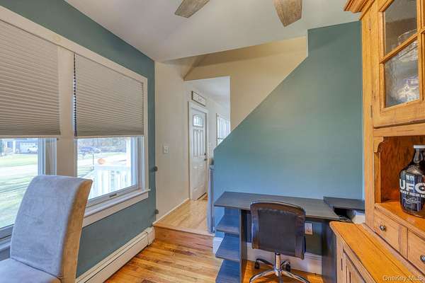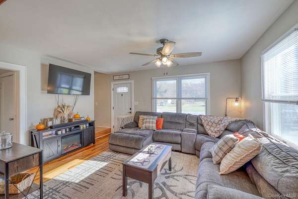 Welcome to this charming three-bedroom Cape Cod set on a beautifully cleared and level two-acre lot with Pear Trees, Mulberry Trees and Roses of Sharon bushes along the edge of the property. Step into the inviting sunroom, wrapped in windows that fill the space with natural light-an ideal spot to enjoy your morning coffee and take in the peaceful surroundings. The cozy eat-in kitchen overlooks the backyard and flows seamlessly into the nicely sized living room, where hardwood floors extend throughout the main level. A fully updated bathroom sits conveniently beside the primary bedroom, which features its own walk-in closet. Just beyond the living room, a quaint office nook provides the perfect work-from-home setup. Upstairs, you'll find two additional bedrooms and a half bath, offering plenty of space for guests, or hobbies. Outside, the oversized driveway provides ample parking and leads to a two-car garage, plus an additional detached garage ideal for lawn equipment, storage, or transforming into a workshop, studio, or pool house. This delightful property blends comfort, functionality, and outdoor potential-ready to welcome you home. Close to local eateries, wineries, breweries, Legoland, Angry Orchard, Minnewaska State Park and Mohonk Mountain House for beautiful hiking trails and more! Valley Central School District