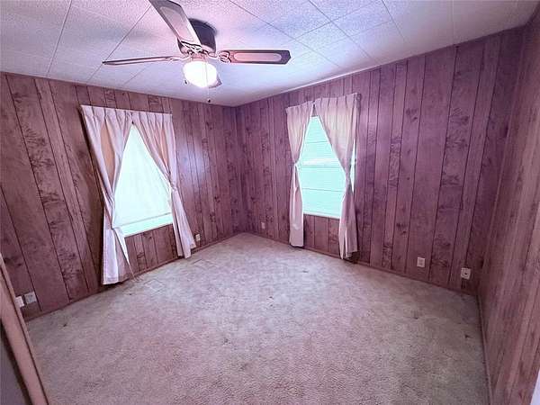 Welcome home to this beautiful piece of property on almost 3 acres. Plenty of room for horses, chickens, garden, and room to roam in the quiet country setting. So very well cared for and maintained by the same family for 40 plus years. Several mature trees on the front of the lot, with really nice grass, and large, towering trees on the rear of the property as well. Detached garage is huge and extremely well built with extra storage and shelving and could double as a workshop with electrical in it. Enjoy the fall evenings on a perfect covered porch in a quiet setting where you can hear the birds chirping and see the stars shining. Both front yard and back yard have plenty of shade that would be so nice with a swing set or sand box. With almost 3 acres of land the possibilities are endless. Wood paneling throughout the property creates a cozy warm ambiance. The kitchen has a large window letting in a good amount of natural light. The kitchen cabinetry is hand built and solid wood, with vintage hardware. Laundry room is oversized with room for full size washer and dryer and extra storage space. Both Bedrooms have two windows and good-sized closets. Bathroom is conveniently located off hallway with easy access to both bedrooms and living room. Home is very clean with wonderful bones where you can bring your own ideas and make it your dream home. Absolutely move in ready. Perfect size for a small growing family, and or plenty of room to add on in the future. Perrin is a great place to raise a family with stellar schools and an A+ rating. Awesome location only 15 minutes to Mineral Wells and Jacksboro, and 30 minutes to Weatherford and Springtown. Perrin offers a true down-home country setting with convenience to bigger towns for the best of both worlds. This property is truly lovely and would be a wonderful home for any family. Take advantage of this opportunity. Hurry this beautiful piece of Texas real estate won't last long!
