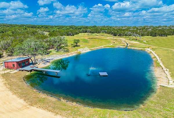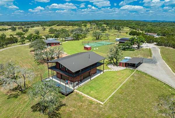 Welcome to Lonesome Valley, a stunning 260-acre Hill Country ranch in Texas wine country. Just 30 minutes west of Dripping Springs, 9 miles west of Johnson City on Hwy 290 and 1.5 miles off Rocky Creek Road, this private estate offers a mile-long paved drive to the main improvements. The ranch features breathtaking views, mature oaks, rolling hills, open pastures, and wooded wildlife habitat. Wildlife includes whitetail deer, axis, turkey, dove, and hogs. About half the ranch is cleared, half remains natural. Improvements include a 3-bed, 3-bath main home with a covered outdoor kitchen/living area, and a barndominium with a 3-bed, 3-bath upstairs, 10-bed bunk room, and a full downstairs saloon, kitchen, bath, and living area. Amenities: fire pit, basketball, tennis, and two pickleball courts. Also included: equipment barn with apartment, 2-1 fishing cabin by a 1-acre pond with pier, fountain, dock, and man-made creek. Off-grid capable: solar, 100K-gallon rainwater system, deep well, backup generators, wood stoves, 4K gallons propane, and underground power. Income potential from Airbnb, weddings, and events--over $30K in Q4 2024. Offered fully furnished; replacement value $10M+. *Financing available *Owner-Agent