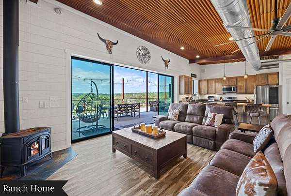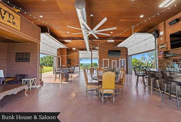 In the heart of Texas Wine Country near Fredericksburg, 160 Acres, Parked Out, Pond, Multiple Improvements & Off-Grid Capable. Larger acreage option available. Welcome to Lonesome Valley, a spectacular 160-acre Hill Country ranch in vineyard country between Johnson City and Fredericksburg (a 20-minute drive). Conveniently located approximately one hour from San Antonio and Austin. Larger acreage option available. The ranch offers phenomenal views, mature oak trees, rolling topography, and large pasture. Lonesome Valley Ranch is off-grid capable; more information is below. Approximately half of the ranch is parked out, and the rest has been left with excellent wildlife habitat, including whitetail deer, axis deer, turkey, dove, and hogs, making this an excellent hunting ranch. Improvements include a 3-bedroom, 3-bathroom home with a large covered outdoor patio and kitchen and a 3-bedroom, 4-bathroom barndominium with a ten bed upstairs bunk room. You'll find a saloon, full kitchen, bath, and outdoor kitchen downstairs. Both the upstairs and downstairs have covered wraparound porches and offer spectacular views. Between the barndominium and the home is a large fire pit, a basketball court, a tennis court, and two pickleball courts. An equipment barn with a small apartment completes the compound. While the ranch has underground electricity and a deepwater well, it is also entirely off-grid capable, with solar, nearly 100,000 gallons of rainwater collection, two backup generators, wood burning stoves, and 3,000 gallons of backup propane. The property also has a high-fenced garden. The property also features a seasonal creek through the valley in the center of the ranch, featuring trails and incredible trees at the creek bottom. The ranch is an excellent family retreat with income potential through Airbnb rentals, corporate events, weddings, and other venues. The owner began renting it as an Airbnb last year and grossed over $30,000 in the fourth quarter of 2024.
