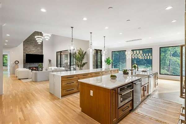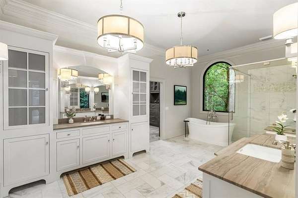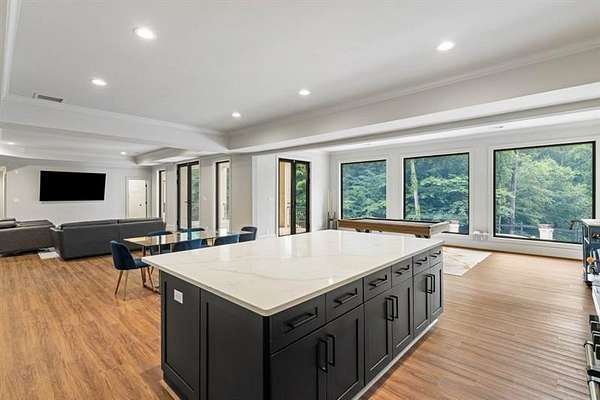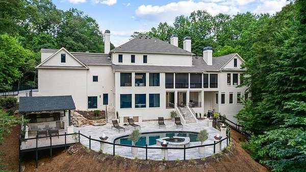 Set at the quiet end of an exclusive cul-de-sac, beyond a secure gated entrance, this spectacular estate offers supreme privacy and unparalleled sophistication on over 2.5 acres of lush, manicured grounds. A brand-new driveway welcomes you into a world where every detail has been elevated from cutting-edge smart home technology to exquisite, designer finishes throughout. Step into the dramatic two-story foyer and instantly feel the elegance unfold. Flanking the entrance are formal dining and living rooms, each with a stately fireplace and refined architectural touches, perfect for intimate evenings or grand entertaining. The heart of the home is a dream kitchen that blends beauty and function in perfect harmony. Outfitted with dual oversized islands, two Sub-Zero refrigerators/freezers, a professional Wolf range, two dishwashers, a large walk-in pantry, and a sunlit breakfast area, this space opens seamlessly to a serene screened porch, ideal for relaxed morning rituals or twilight cocktails. The main level continues to impress with a large family room with fireplace, a stylish full bar wrapped in glowing translucent onyx stone, two powder rooms, and a generously sized laundry room featuring two washer/dryer sets. Throughout the home, you'll find brand-new hardwood floors, windows, and doors bringing fresh elegance and energy efficiency to every space. Retreat to the luxurious owner's suite on the main level a true sanctuary featuring a cozy fireplace, dual vanities, a soaking tub, oversized walk-in shower, and a spacious boutique-style closet with its own laundry hookup. Upstairs, five additional bedrooms, four full baths, and a versatile bonus room provide ample space for family, guests, or work-from-home needs. The fully finished terrace level is a destination of its own: entertain effortlessly with a second full kitchen, an immersive home theater, a professional-grade golf simulator room, a rejuvenating sauna, and an additional guest suite for extended stays or private living. Step outside into your personal resort oasis. With two new elegant waterfalls, newly renovated pool and spa, while the fully equipped cabana complete with gas grill and built-in refrigerator sets the stage for al fresco entertaining. A lighted tennis court offers play day or night, and the expansive, private backyard connects directly to the Chattahoochee River National Park, offering unmatched access to nature and miles of scenic trails. Meticulously reimagined with over $2 million in recent upgrades and remodeling, this estate has been transformed into a turn-key masterpiece of design and function. The exterior now boasts a striking architectural presence with a sophisticated blend of natural stone, custom brickwork, warm wood accents, and sleek glass finishes, creating curb appeal that's both timeless and cutting-edge. Security and peace of mind are paramount, with state-of-the-art ADT protection and a full-perimeter system of 8 high-definition surveillance cameras. This home is truly ready to be lived in from day one no renovations, no waiting. From top to bottom, every surface, system, and finish is brand-new, delivering the rare opportunity to own a completely remodeled luxury residence in a prime, ultra-private location. This incredible home represents not only unmatched quality but exceptional value for a fully modernized estate of this caliber.