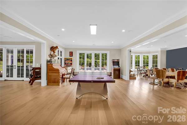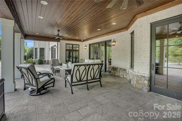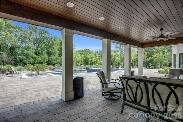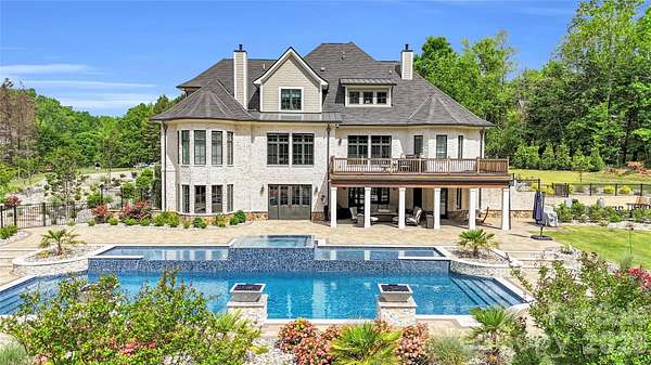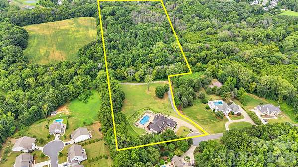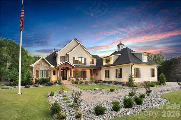 A truly rare offering just minutes from Charlotte, this extraordinary 20-acre luxury estate is a private sanctuary designed for refined living and unforgettable entertaining. Zoned for up to three horses with the option to add a barn or small barndominium, check CCR, the property features approximately 18 acres of scenic riding and exploring trails woven through serene natural surroundings. The residence is masterfully constructed with a reinforced poured-concrete foundation and engineered framing, wrapped in full masonry with striking oozing mortar joints. Architectural Glenwood shingles, solid cedar garage doors, iron entry door, and cedar exterior trim set a tone of timeless craftsmanship. Inside, solid oak flooring rests on a double-layer, moisture-resistant subfloor, complemented by solid wood Cutter doors with Emtek hardware throughout. The thoughtfully designed main level offers a luxurious primary suite and an exceptional private guest suite. At the heart of the home, the chef's kitchen showcases custom cabinetry and premium finishes, seamlessly flowing into elegant gathering spaces. A mahogany wine cellar, Lutron lighting, and integrated Sonos system elevate everyday living. Infrastructure is equally impressive with three tankless water heaters, four furnaces, 600-amp electrical service, and four whole-house generators, along with a comprehensive security system featuring central monitoring and surveillance. Step outside to a covered Brazilian Ipe deck overlooking breathtaking grounds highlighted by extensive landscaping, full exterior lighting, and Hunter irrigation. The spectacular lower level is an entertainer's dream, while the resort-style heated and cooled pool creates a year-round oasis. With remarkably low road maintenance costs and a setting that blends seclusion, luxury, and convenience, this one-of-a-kind estate offers an unparalleled lifestyle-where privacy, craftsmanship, and elegance meet.