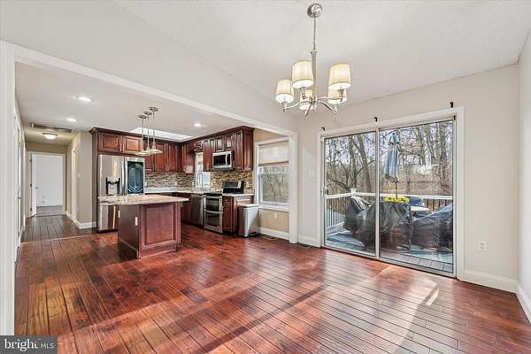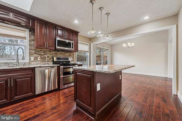 Welcome to this beautifully maintained traditional home positioned on 1 1/2 acres of land in a serene wooded setting. The upper level features warm hardwood floors and a charming wood burning fireplace that creates an inviting focal point in the formal living room. The dining area opens to a deck that offers a lovely view of the tree lined backyard, providing a perfect place to relax or entertain. The kitchen offers rich mahogany colored cabinets, granite countertops, a double oven, electric range, built in microwave, dishwasher, refrigerator, and a convenient pantry. It is a comfortable and functional space designed for everyday cooking and hosting. Three spacious bedrooms await you along with a full hallway bath that includes a shower stall. The lower level adds wonderful versatility with laminated flooring throughout and direct access to an indoor two car garage. This level includes a laundry room, a full bath with both a shower stall and a tub, plus an additional room that can be used as a bedroom, den, or family room. This area opens to a walkout patio that leads to the spacious private backyard and boasts a peaceful stream running alongside the driveway. The outdoor space features a storage shed, patio, and a beautiful wooded backdrop with no neighbors at the rear of the property, offering exceptional privacy and a serene natural setting. This inviting home combines comfort, flexibility, and tranquil surroundings, making it a truly special opportunity.