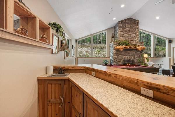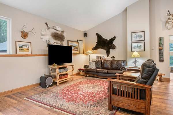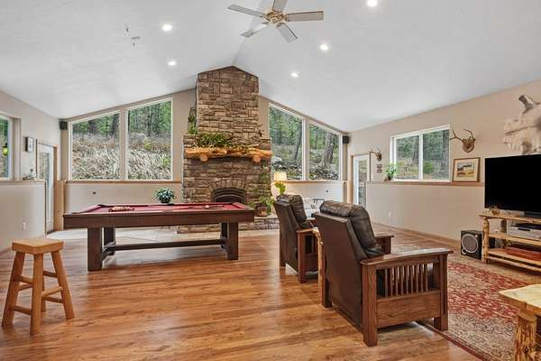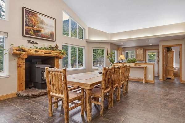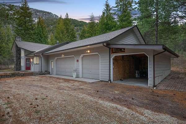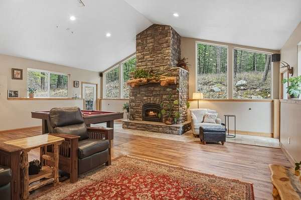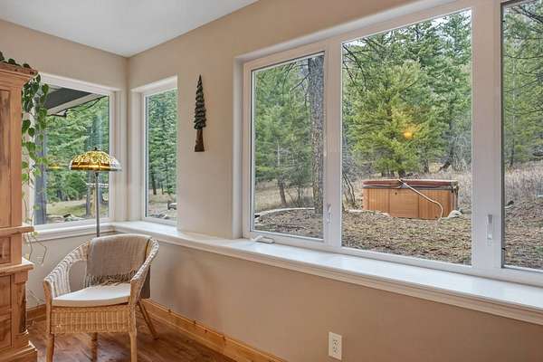 Tucked among the trees in a private gated community, this beautiful and spacious home offers the perfect blend of Montana tranquility and convenience, on the Blackfoot River and a short drive to Missoula. The thoughtfully designed layout features a main-level primary ensuite, kitchen, with dual ovens, integrated appliance storage, pantry, and living area, providing comfortable main-floor living. The lower level includes two additional bedrooms, a bonus room, a full bathroom, and den. The upper level offers a large living and recreation area complete with a wet bar, plus an additional bonus room ideal for guests, a home office, fitness space, or hobbies. Outside, enjoy the peaceful wooded setting with raised garden beds, a welcoming firepit area, wildlife, and a relaxing hot tub-perfect for soaking under the big Montana sky. This home is ideal for everyday living, entertaining, or the occasional Montana escape.