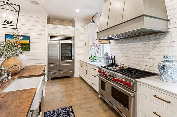 The main home features a primary suite on the main level, custom double vanities, a soaking tub, and high-end finishes throughout. A chef's dream, the gourmet kitchen is outfitted with premium Wolf and Sub-Zero appliances and is complemented by a separate scullery for added prep and storage. Upstairs, you'll find three oversized ensuite bedrooms, a media room, and a versatile flex space ideal for a playroom, home gym, second office or converted into a fourth bedroom. The upstairs has large porch with hanging bed and swings.