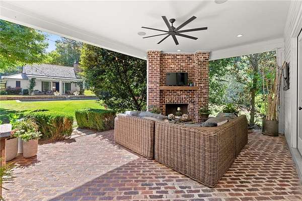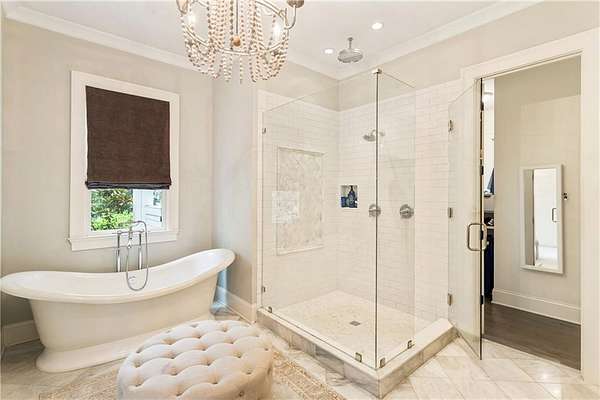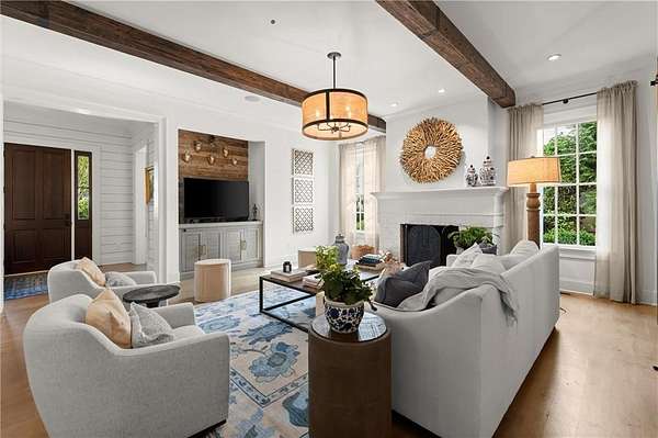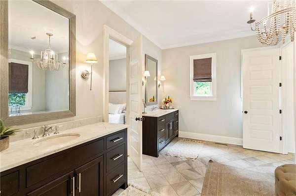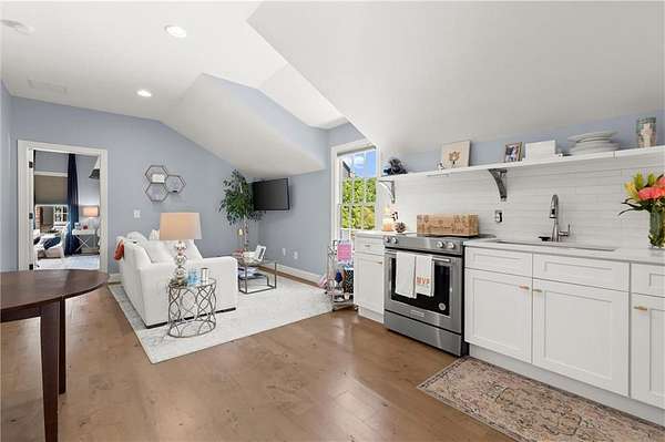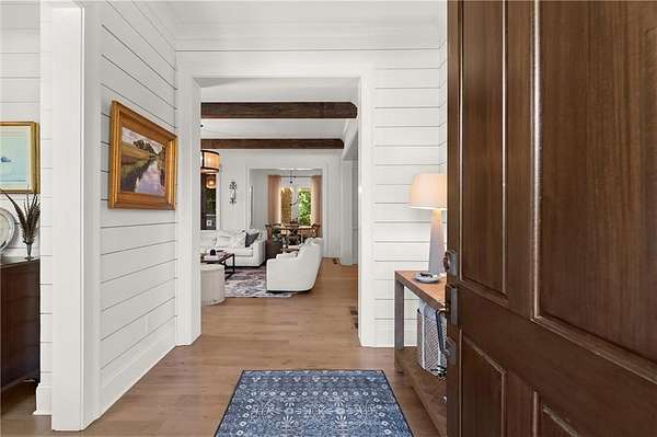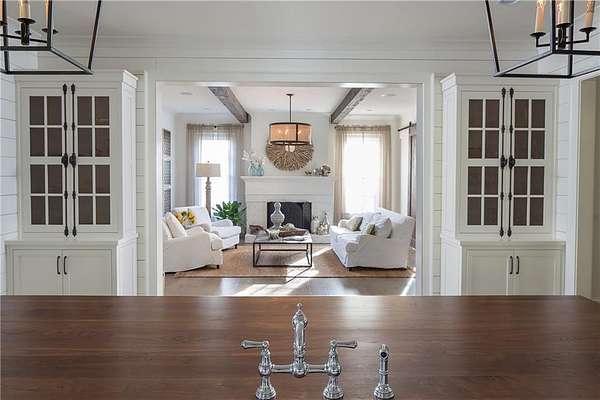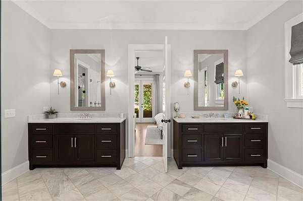 Above the three-car garage, the carriage house apartment includes a full kitchen, cozy den, and either two bedrooms or a bedroom and an office, making it ideal for in-laws, guests, or rental opportunities.