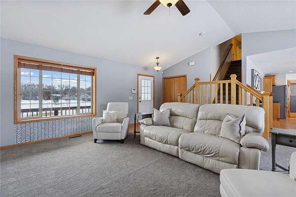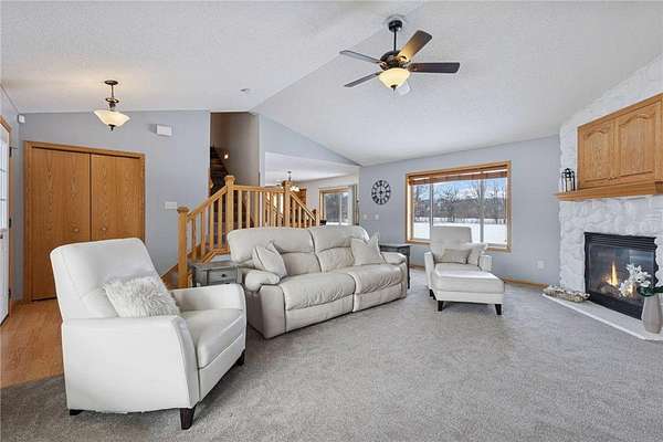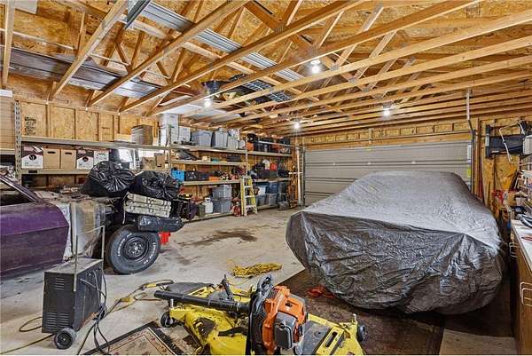 An exceptional opportunity! Multiple buildings with tons of garage space, set on 2.69 acres, with privacy, and a beautiful home! Even a long tree-lined driveway! Home is a modified two-story with a finished walkout lower level. Open concept floor plan with vaulted ceilings fill the home with natural light! Three bedrooms up and one down, plus a main level office with glass door. The primary suite has a large walk-in closet and private full bathroom with lots of countertop space. Kitchen features stainless steel appliances, gas range, center island, tile backsplash, and a walk-in pantry. NEW: roof, air conditioner, carpeting, ceiling fans, and more! Appreciate having a gas fireplace, main level laundry with second hookup in lower level, stairway lights, maintenance-free siding, gutters, irrigation system, and back concrete patio. Quiet neighborhood, excellent curb appeal + front porch, and wildlife galore! The attached 3-car garage is heated and insulated. The detached 4-car garage is 36x24, has multiple doors, a concrete floor, and power. The storage building is 27x20. There is an additional shed located behind the detached garage. Bring your toys and set up the shop! Schedule your tour today!
