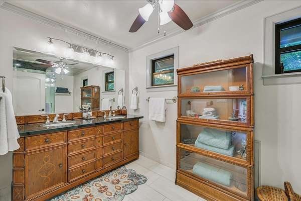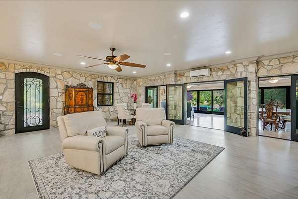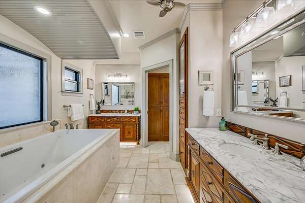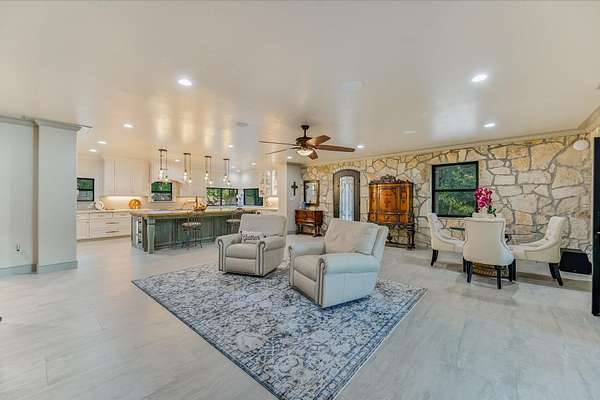 - Breakfast Bar, Ceiling Fan(s), Granite Counters, Kitchen Island, Open Floorplan, Primary Bedroom On Main, Recessed Lighting, Soaking Tub, Sound System, Walk-In Closet(s)