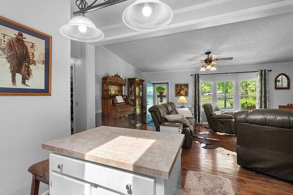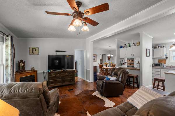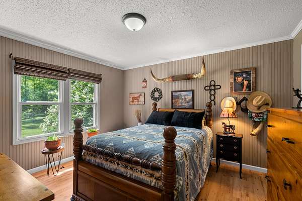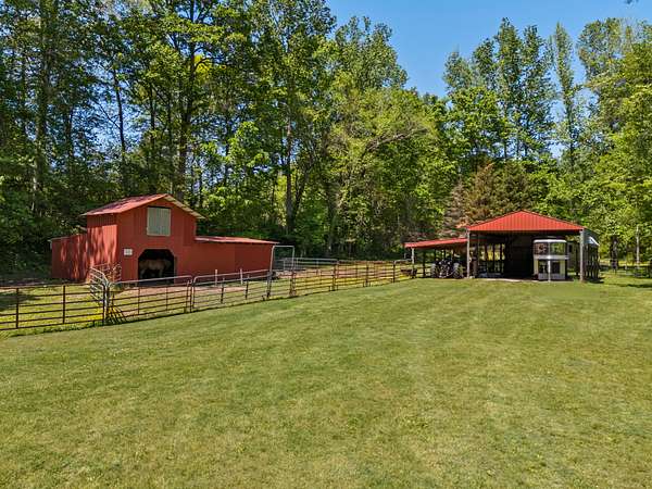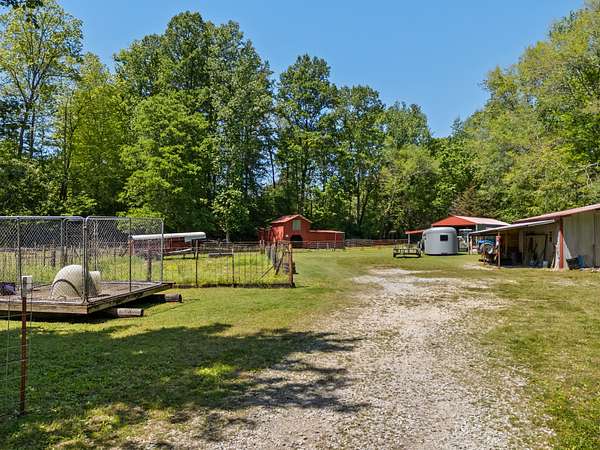 Equestrian Farm situated on 26+/- ACRES with small YEAR ROUND Creek flowing along Boundary Line AND ONLY 4 MILES TO TN RIVER* Beautiful Updated Manufactured Home on Permanent Foundation in combination with 26 Acres of mixed Timber & Pasture Land is an attractive option for those seeking a RURAL LIFESTYLE with ample space for farming and homesteading pursuits* The home has 2384 SF featuring 4 Bedrooms - 3 Full Baths- Open Floor Concept with Kitchen, Dining and Living Room* The Bonus Room was added on to the home and is on a slab foundation with 2 exterior doors, one to front and one to back of house- Its located next to the Laundry Room and could serve multiple purposes- Its equipped with a wall gas heater for additional backup heat if needed* The entire home has been upgraded with Hardwood, Laminate & Vinyl Flooring, as well as Windows* Ventless Fireplace in Living Room* Covered Front Porch* Back Patio, Deck around Above Ground Pool* Storage Building* 12x12 Storm Shelter- 2 Barns- & Workshop are all equipped with electric* The Workshop has its own electric meter and has a wood burning stove- It is equipped for a gas stove if desired* Multiple Frost Free Hydrants* New Johnsonville Boat Ramp is 4.0 miles away* Property is fenced and cross fenced! This property is move in ready for anyone with animals! Boundary Lines in photos are approximate and not completely accurate- used to show proximity only. Sellers will be surveying off a small portion of land at the entrance of the property that will not convey.