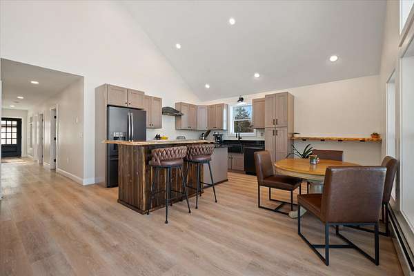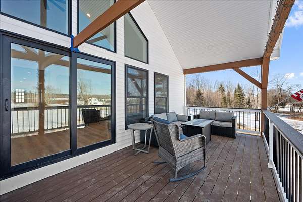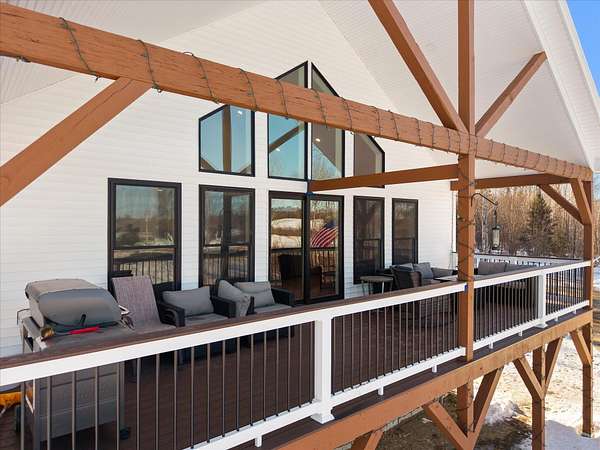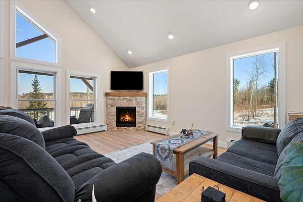 Welcome to this thoughtfully designed chalet-style home built in 2024, offering comfortable one-floor living with a warm, inviting feel. With 3 bedrooms and 2.5 baths, the home blends clean design with a practical layout suited for both everyday life and hosting. The main living area brings together the kitchen, dining, and living spaces beneath high ceilings and abundant natural light. The kitchen features custom cabinetry, quality finishes, and generous workspace, opening naturally to the central living and dining areas. Just off the main living space, a sprawling elevated covered front deck provides a comfortable place to relax, gather, and enjoy the surroundings. The primary suite offers a quiet retreat with a private bath, while two additional bedrooms provide flexibility for guests, family, or a home office. A nearby half bath adds everyday convenience. Downstairs, finished flex space offers room for a media area, gym, or workspace, along with additional storage. 1431 Kennebec Road is a comfortable, well-built home with the warmth and character of a modern chalet. A thoughtful layout, inviting spaces, and quality construction make this a place you'll be proud to call home.