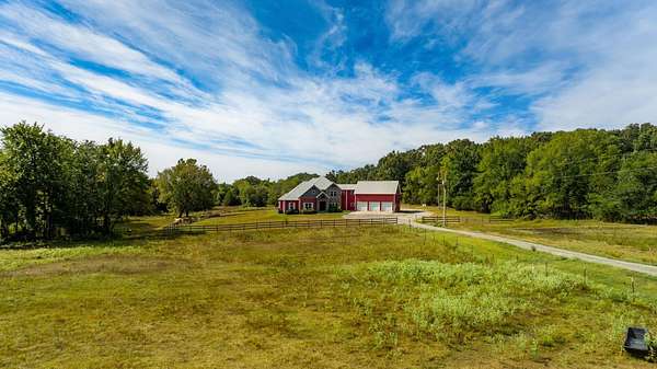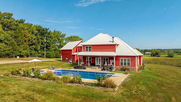 Beautiful country estate on 52 acres with paved road frontage! This spacious home offers 4,263 sq. ft. of living space featuring 4 bedrooms and 3.5 bathrooms, plus a three-car garage. Enjoy outdoor living with a beautiful in-ground pool, perfect for relaxing or entertaining. The property also includes a 2,400 sq. ft. shop with living quarters, complete with 2 bedrooms and 1 bathroom, ideal for guests, rental income, or a private workspace. A rustic man cave provides the perfect spot for entertaining, watching the game, or unwinding after a long day. With 52 scenic acres, this property offers privacy, space, and endless possibilities—whether you’re looking for a family estate, hobby farm, or country retreat with room to live, work, and play.
