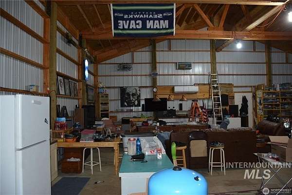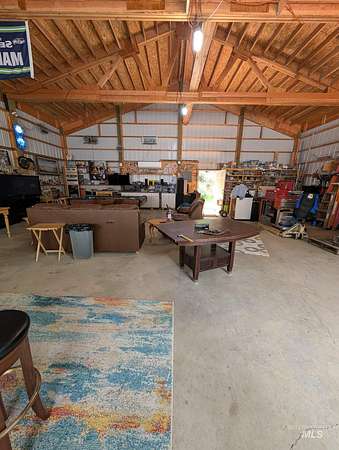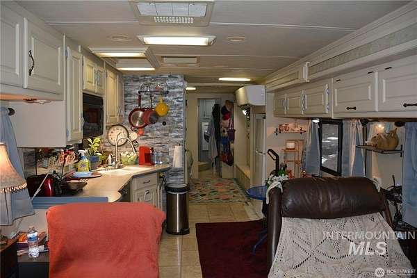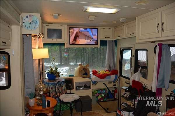 ~ Cozy Updated Retreat - Your Perfect Full Time Home or weekend Getaway! on 4.28 ACRES. Discover this charming, fully updated 1-bedroom, 1.5-bath RV nestled in a serene setting, offering 384 sq. ft. of comfortable living space under a spacious 20x30 pole building. Bathed in natural light from large windows, this cozy place features a warm fireplace, perfect for those chilly evenings. Inside, you'll find a kitchen equipped with a dishwasher, convection oven, table-top cooktop, and refrigerator, along with a convenient washer/dryer combo, efficient heating and air conditioning system, ample storage, and a full tub/shower in the bathroom. some furniture included for a truly move-in-ready experience. Outdoors, enjoy expansive garden space, a large 40x40 shop for projects or storage, an RV dump station for easy adventures, two 40-ft containers for additional storage, a reliable 75-gallon-per-minute well with a new pump house and garden shed, on-site generator and skirting materials, and a wide circular driveway for convenient access. As a bonus, the property comes with a tractor equipped with a blade and backhoe, building materials, shop furniture, stove and refrigerator, a new septic system installed in 2021, and a John Deere mower. This property is an ideal blend of comfort, functionality, and outdoor potential - perfect for a weekend retreat, downsizing, or starting fresh.