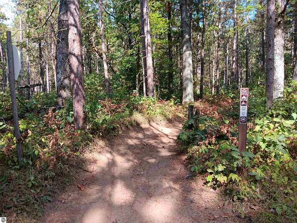 M-37 to 4Mile Road. Go south on North Peacock Trail. Continue straight on North Peacock at the Y. Follow to sign at road. Park at road. Do not use address to locate.