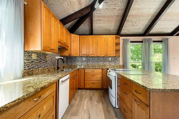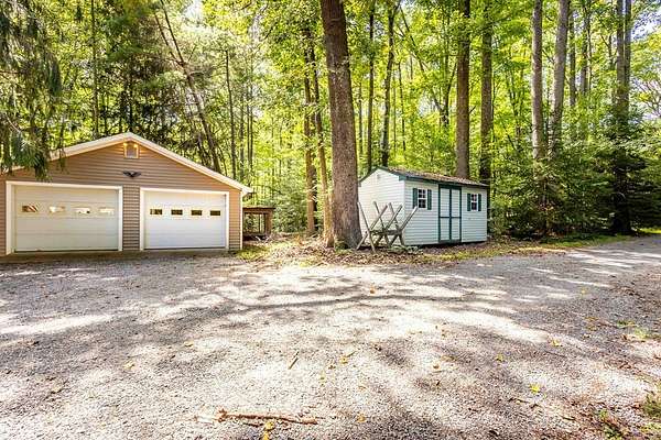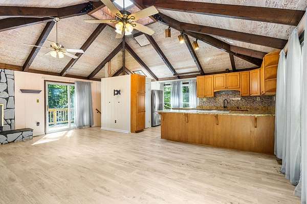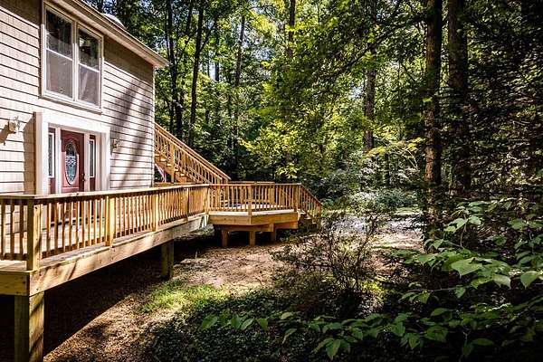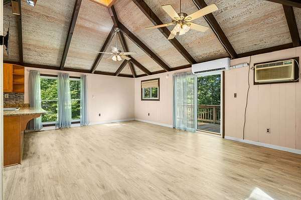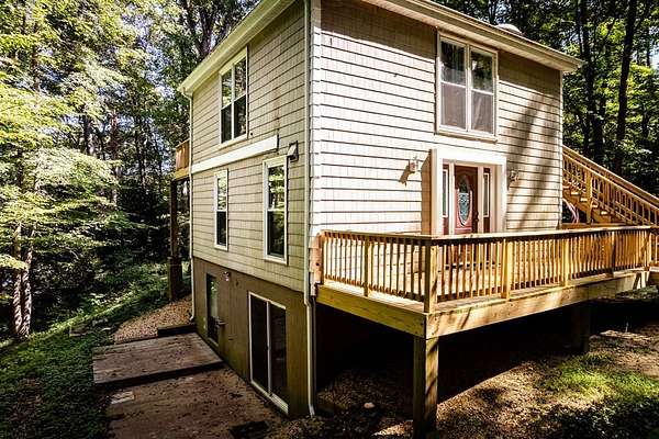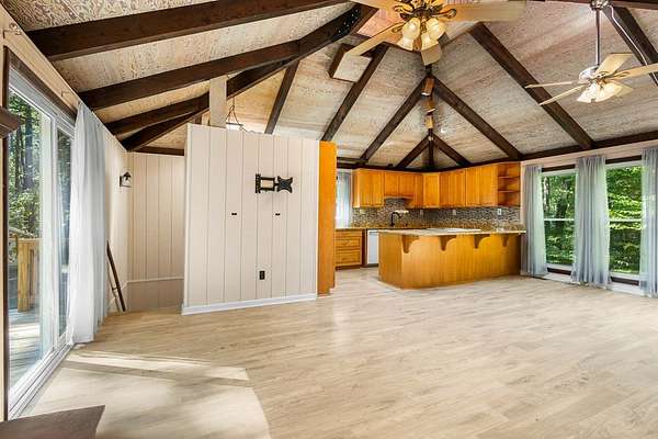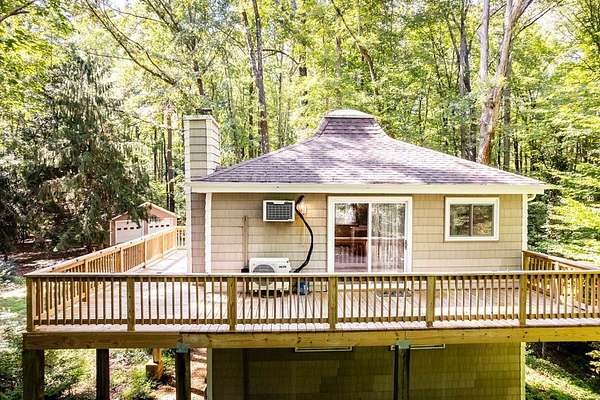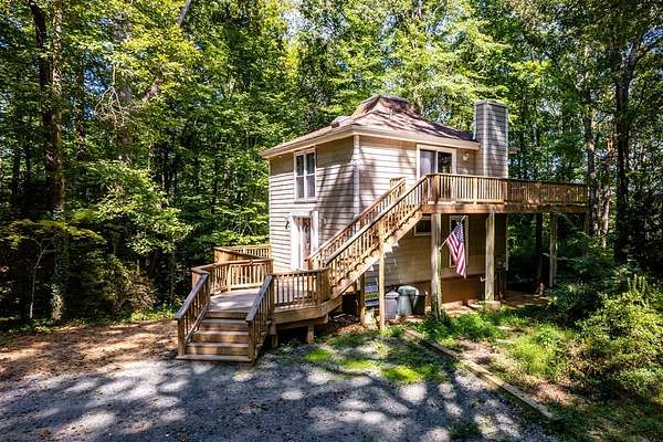 Just five minutes from the Town of Montross, this unique property offers 3.5 wooded acres with frontage on Chandler's Mill Pond. With nearly 190 feet of pond frontage, the setting is private and peaceful, yet convenient to town. The home, originally built in 1979 and updated over the years, features three levels. The unfinished walk-out basement provides excellent potential for additional bedrooms, living space, or a home office, with laundry and HVAC already located here. The main level offers three bedrooms, a full bath, and a brand-new deck with steps leading to the upper floor. Upstairs is an impressive great room combining living, dining, and kitchen areas under a soaring cathedral ceiling with exposed beams, along with a half bath. Exterior features include vinyl shake siding, a detached two-car garage with workshop potential, and a storage shed. A stone driveway, private well, and septic system serve the home. While the property could benefit from some updates and care, it presents a rare opportunity to create a full-time residence, weekend retreat, or short-term rental. With its acreage, flexible spaces, and location on Kings Highway, this property offers value and potential. The seller has relocated and is motivated to sell. Offered at $349,900.
