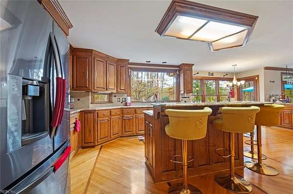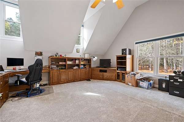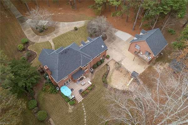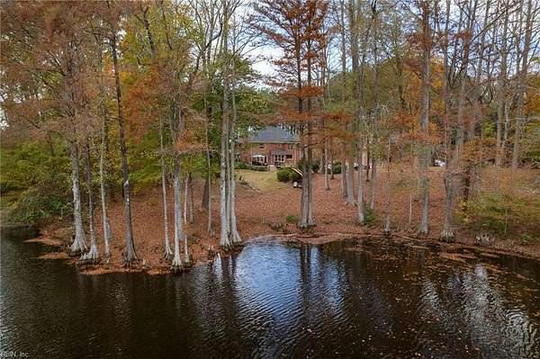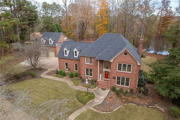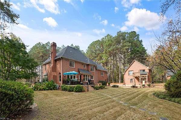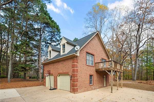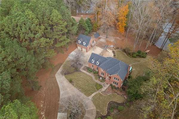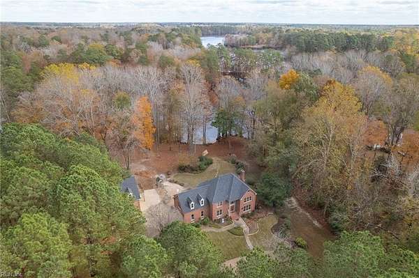 Nestled in a tranquil setting just off Route 460, this stunning 2-acre estate overlooking Lake Cahoon offers the perfect blend of luxury and privacy. The main house has 3 bedrooms, 3 full baths, one half-bath and a room spacious bonus room over the attached garage currently being used as a home office. The primary bedroom has a walk-in closet, jacuzzi tub with lake views, and double sinks. The apartment over the garage is the perfect mother-in-law suite with an efficiency kitchen, den, separate bedroom, and full bath. There is garage space for 5 cars (2-car oversized attached garage, oversized detached 2-car garage with mother-in-law suite above, plus a second detached single-car garage). The spacious back deck and patio are charming areas to entertain or dine while enjoying the serene water and forest views! Call today for your private showing!