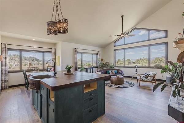 Alysha Ranson, Galles Properties, C: 970-903-1230, alysha@gallesproperties.com, www.crenmls.com: Welcome to 1434 Meadows Drive! This light-filled home is full of unexpected charm - and the views of Pagosa Peak and the San Juan Mountains make it even better. With 2 bedrooms, 3 bathrooms, and a flex space that can potentially become a 3rd bedroom, this home offers room to stretch out and enjoy the Colorado lifestyle. Inside, you'll love the bright open floor plan, 16-foot cathedral ceilings, and oversized windows that bring in natural light and stunning views. The kitchen is beautifully finished with a large walnut island, copper farmhouse sink, custom cabinetry, a coffee station, and a walk-in pantry with sliding barn doors. The main-level primary suite features a fireplace, soaking tub, custom tile, a separate shower, and a spacious walk-in closet. The second bedroom is also located on the main level, with its own private backyard access and bathroom directly across the hall. Upstairs, the flex space works perfectly as a home office, studio, or guest suite - complete with its own 3/4 bath. Smart upgrades include a radiant electric heating system, whole-house surge protection, tankless water heater, and a solar system for energy efficiency. The detached 3-door garage with 220V service offers plenty of storage and workspace. Outside, you'll find level terrain, beautiful ponderosa and juniper trees, a seasonal pond, and frequent visits from local wildlife - including a resident elk herd. Enjoy every angle of this property from the newly added path that takes you around the perimeter of the acreage! Located just minutes from shopping, groceries, and the hospital, this home delivers comfort, convenience, and character in one stunning package.*The Seller is willing to contribute towards buying down Buyer's mortgage rate. This could help reduce the monthly payment. Terms subject to Buyer's loan program and lender approval.*