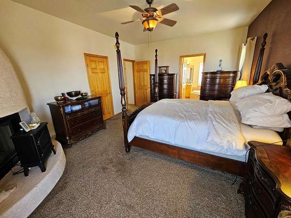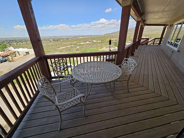 Nearly 1.7 Acres of land with this beautiful home, breathtaking views, great location - can't ask for more than that. This home sits on the side of the mountain and overlooks the Tularosa Basin. The west side covered deck goes from the home entrance to the length of the house and ends in front of the master bedroom - great place to enjoy sunsets and early morning coffee. When you enter the home you walk into a large living room with tall windows and a corner fireplace. Off the living room is formal dining room and an eat-in kitchen with granite countertops, stainless steel appliances and huge walk-in pantry. The master suite has an office area, laundry hookups and linen closet. In addition, the master suite has a woodburning/gas fireplace and double doors that open onto the west covered deck overlooking the valley. The master bath has double sinks, jet tub and separate shower. The other 2 bedrooms and full bath are in the other part of the house. In addition, it has a 2-car garage and a koi pond which everyone will enjoy. Call and schedule a private showing today.