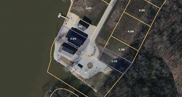 One of the most private and scenic offerings in White Oak Landing! This rare deeded package includes both a .37-acre waterfront A-lot with 61 feet of Kentucky Lake frontage and a cleared B-lot directly across the maintained gravel road—ideal for added parking, storage, or guests. Located at the very southern tip of the subdivision, Lot 2 is tucked away at the end of a quiet cul-de-sac with mature tree lines on both sides, creating a uniquely peaceful and secluded setting.