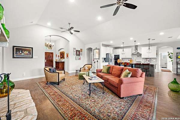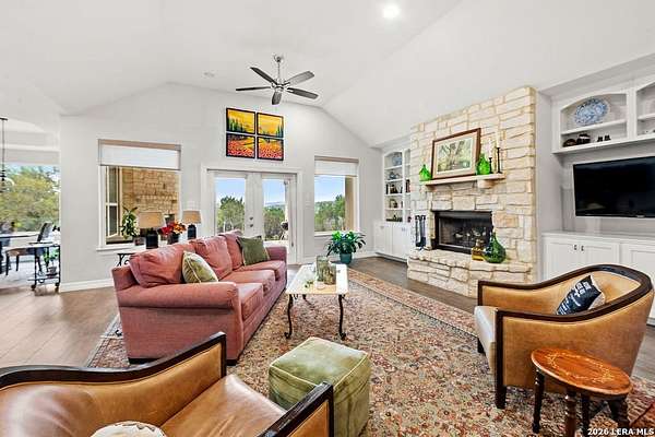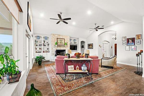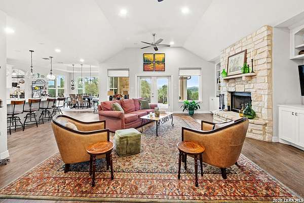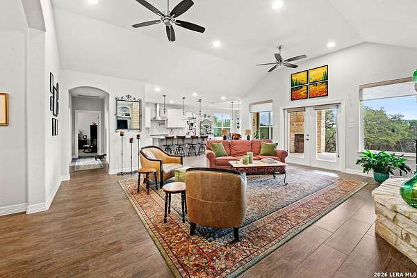 Hill Country Sanctuary on 6.92 Fenced Acres | 1434 Village Top, Canyon Lake, Tx. Discover the perfect blend of modern luxury and wide-open space. Perched on nearly 7 fully fenced acres, this stunning 1-story stone and stucco retreat offers the ultimate private escape without sacrificing convenience. Ideally positioned between Austin and San Antonio, you are minutes from the best of the Hill Country while enjoying the peace and quiet of a sprawling Hill Country gated property. Just 20 minutes to Wimberley, and 15 minutes to Gruene. Interior Excellence Step inside to an open-concept floor plan defined by soaring high ceilings and a wall of windows that flood the home with natural light. Chef's Island Kitchen: The heart of the home, featuring expansive counter space and a layout designed for effortless entertaining. Work from Home: A dedicated private office provides a quiet professional space separate from the three spacious bedrooms. Upgraded Systems: Move in with peace of mind thanks to a brand-new water softener system and meticulously maintained 2.5 bathrooms. Gated entrance, and city water. Outdoor Paradise & Local Lifestyle The 6.92-acre lot is a rare find-level, usable, and fully fenced for pets, hobbies, or future additions like a pool or workshop. When you aren't enjoying the sunset from your back porch, you are in the center of Texas's premier recreation hub: Music & Nightlife: Catch a show at the legendary Whitewater Amphitheater, located right on the Guadalupe River. Minutes from Canyon Lake for boating and fishing, and the famous Horseshoe for tubing. Don't miss this rare opportunity to own a slice of Hill Country Paradise!